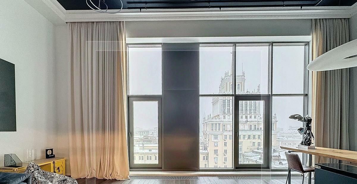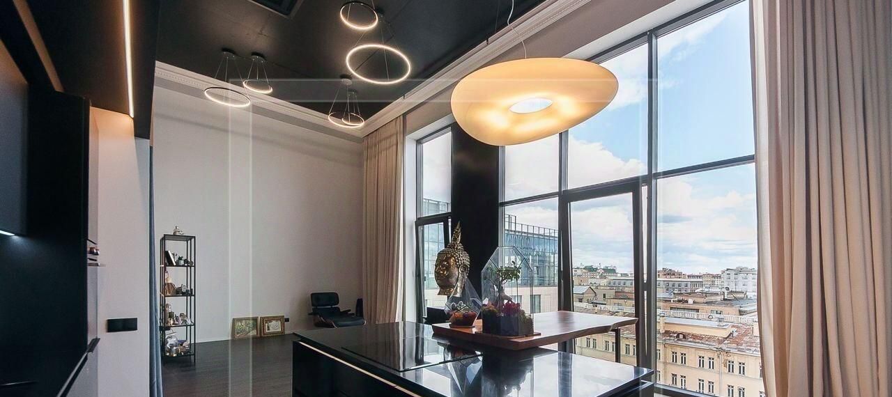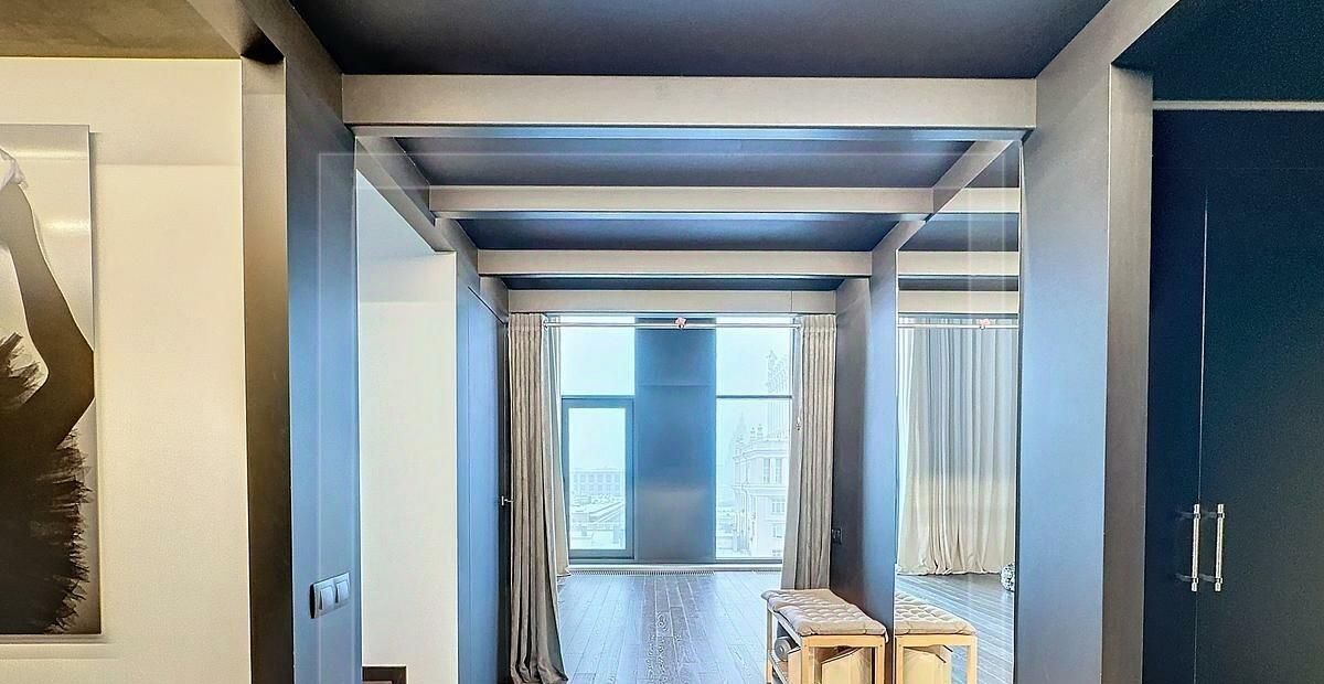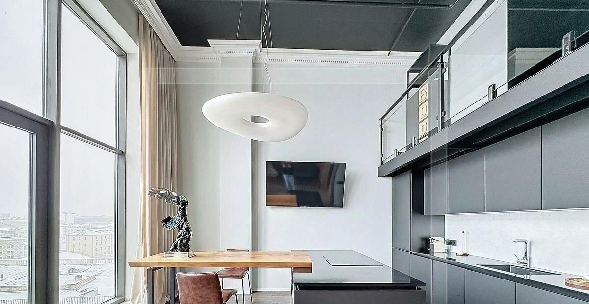 В квартире: С мебелью, Посудомоечная машина, Стиральная машина, Сушильная машина, Бойлер, Теплые полы, Спутниковое/кабельное телевидение, Видеонаблюдение, Охрана, Интернет, Видовая квартира, Изолированная кухня, Европланировка, Ванна, Интерьер в современном стиле, Лофт, Кондиционер, Лифт, Кухонная мебель, Окна на улицу, Окна во двор