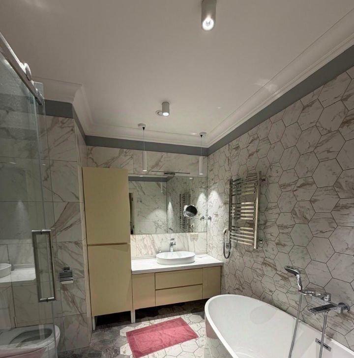 В квартире выполнен дизайнерский ремонт, использованы качественные натуральные материалы,вся мебель заказная из Италии, кухня из натурального камня из США, вся техника Европа. Все покупалось и делалось для собственного проживания, все рабочее в отличном состоянии. есть большая гардеробная. На крыше оборудованна терраса со смотровой площадкой для всех жильцов, в холле круглосуточная охрана, консьерж, своя круглосуточная диспетчерская в ЖК. Очень хорошая Управляющая Компания.