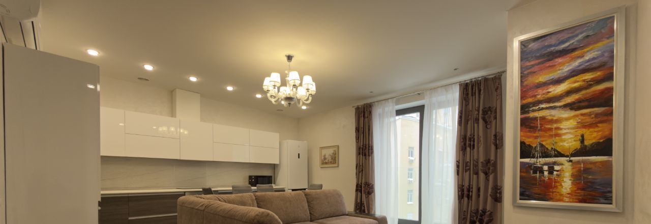 Из бытовой техники: холодильник, СВЧ, духовой шкаф, стиральная и посудомоечная машины, ТВ + 2й ТВ в гостиную по желанию клиента.