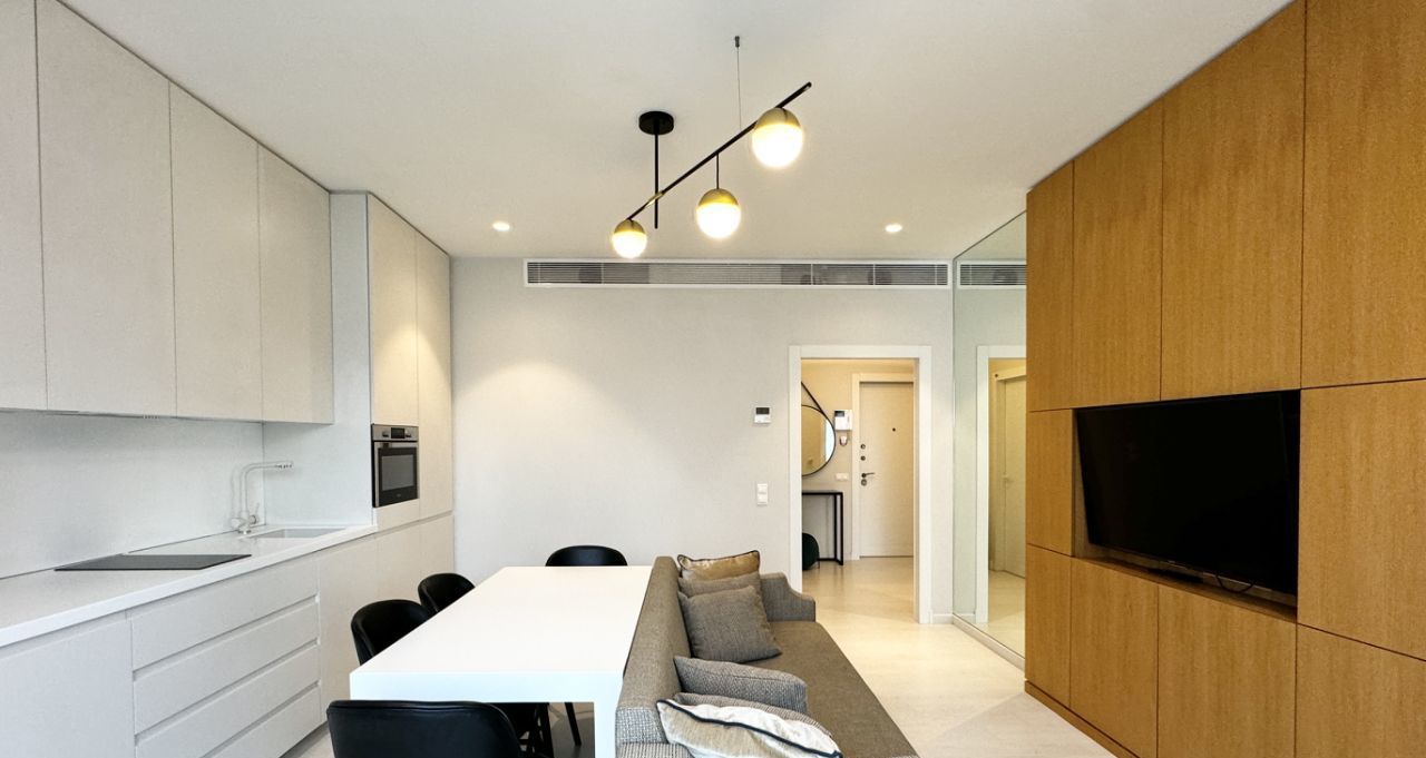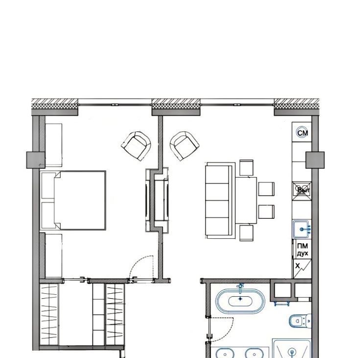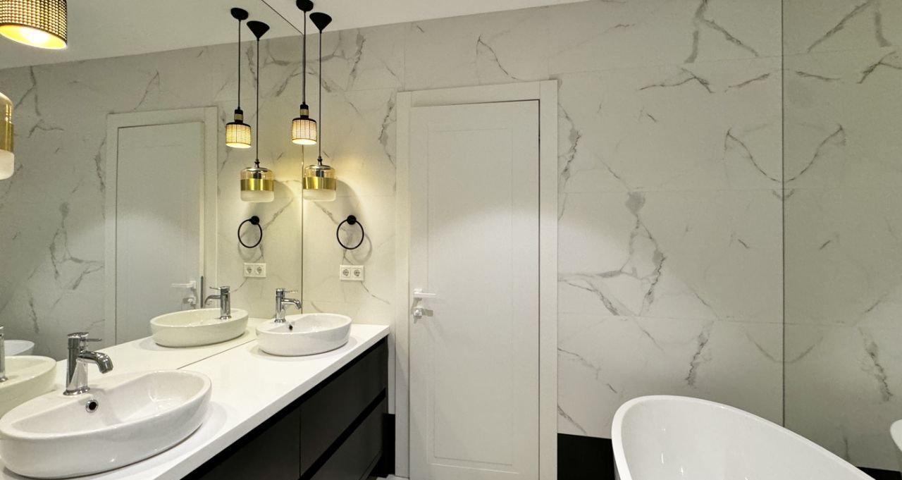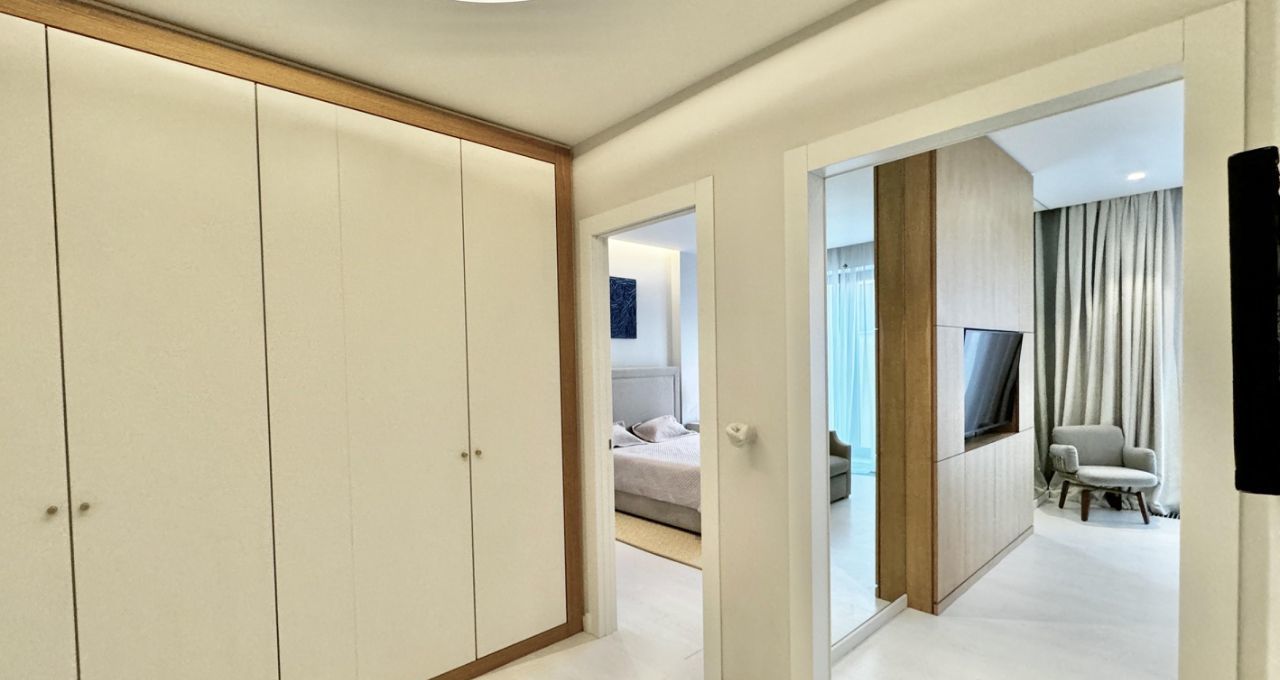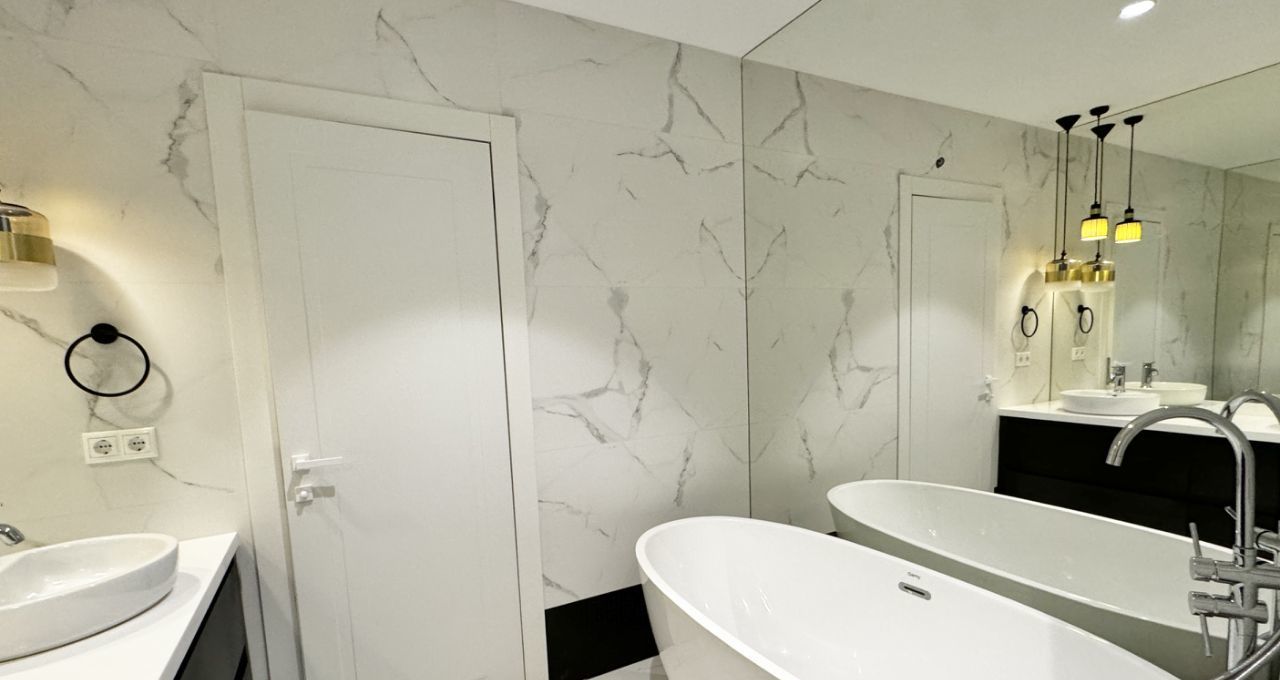 ПЛАНИРОВКА. Кухня-гостиная со встроенной кухней и мебелью, оснащенная всей необходимой бытовой техникой, включая посудомоечную машину, прихожая с вместительным шкафом, огромная ванная комната с душевой кабиной и отдельно стоящей ванной, спальня с просторной гардеробной комнатой.