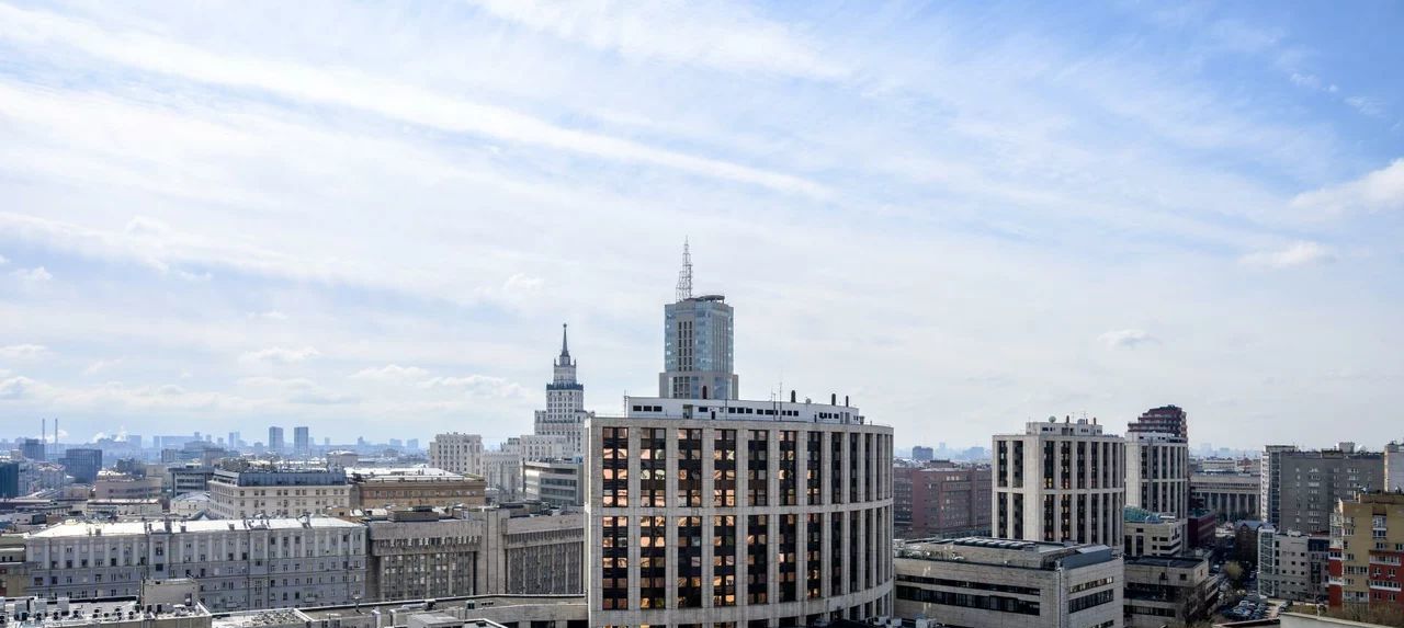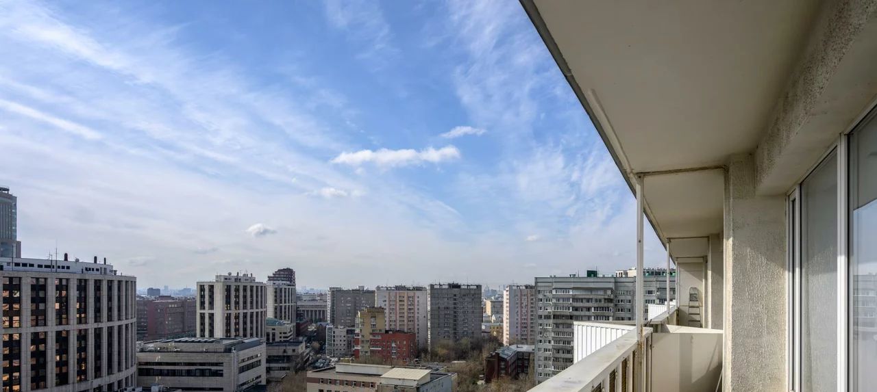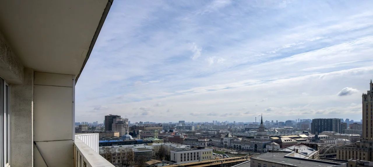 Открытый балкон, с шикарным панорамным видом на город с высоты птичьего полета.