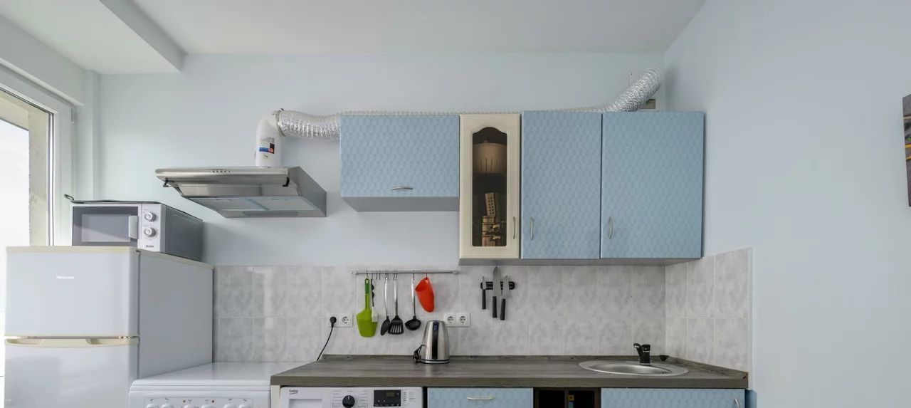 Кухня удобная, просторная и изолированная.