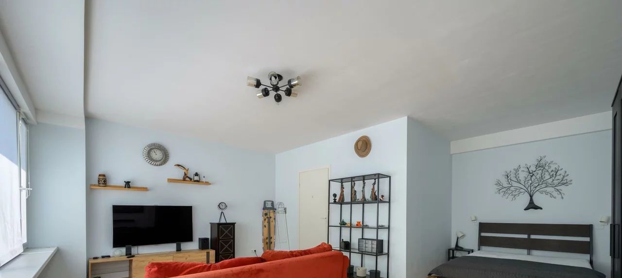 Просторная и светлая, удобно меблирована. Смежные комнаты, пространство спальной скрыто от глаз, проход возможен только через пространство гостиной.