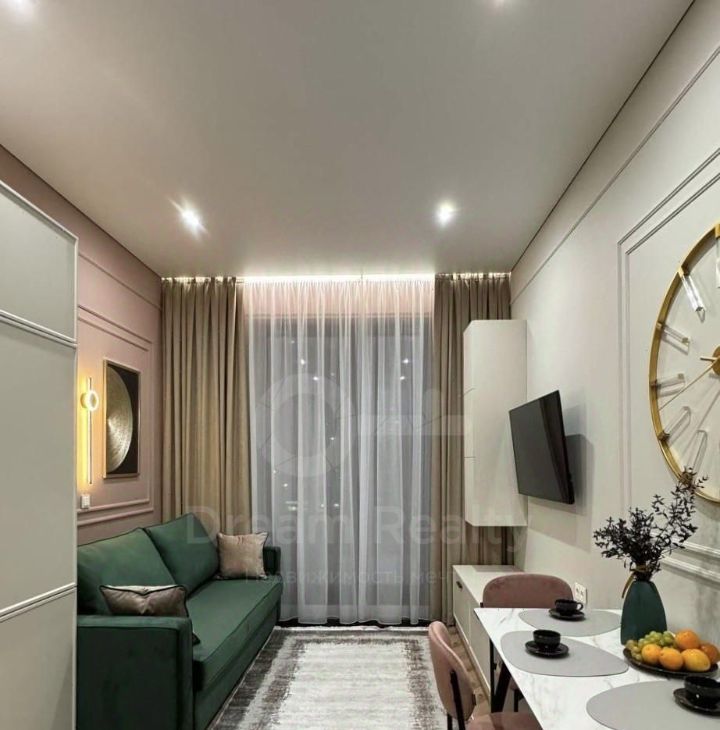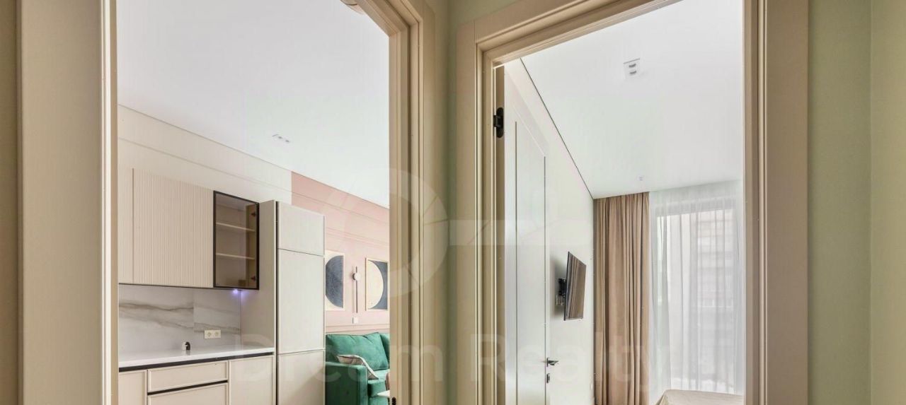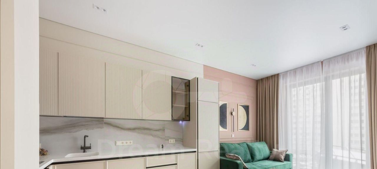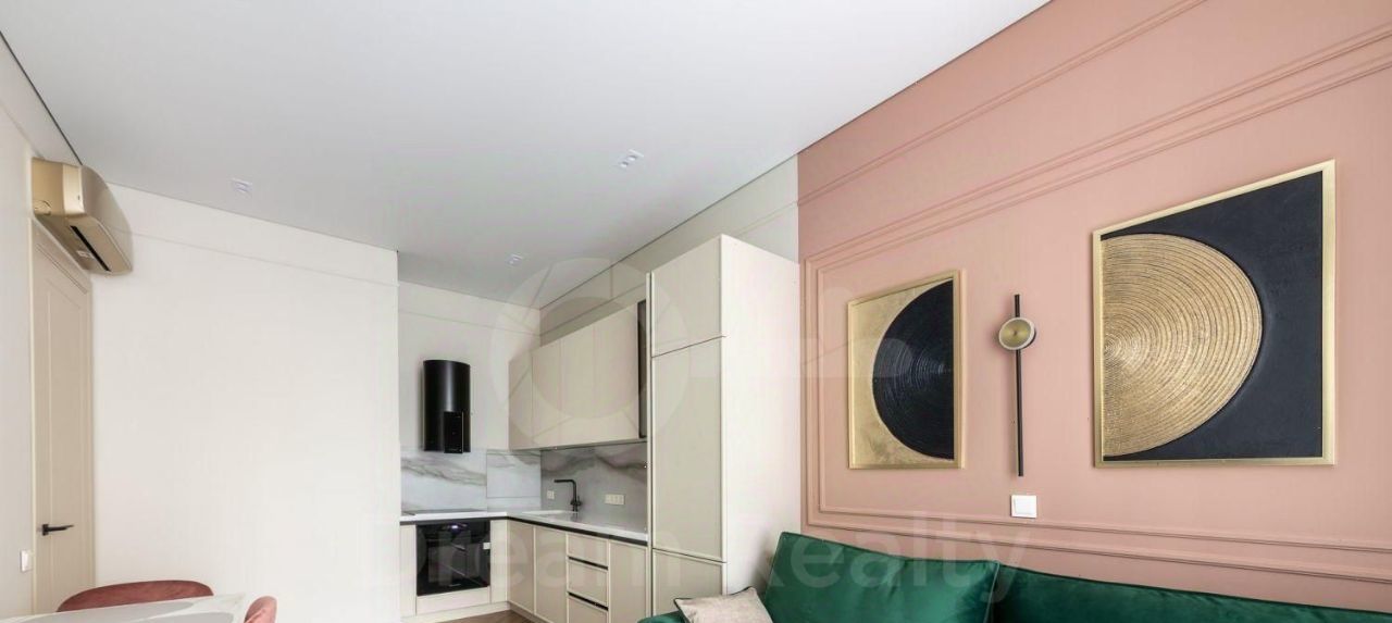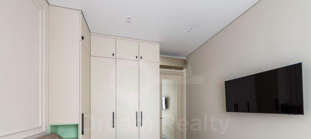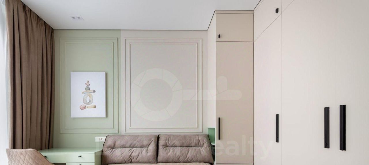 ID 8063. Квартира с дизайнерским ремонтом, мебелью и техникой в премиальном ЖК "Dialog". Высокие потолки - 3.25 м., спальня - 12.5 кв.м., кухня-гостиная - 17.5 кв.м., зонально - 8.1/9.7 кв.м. Квартира оборудована гардеробной комнатой. Окна обращены в сторону двора, направление юго-восток.