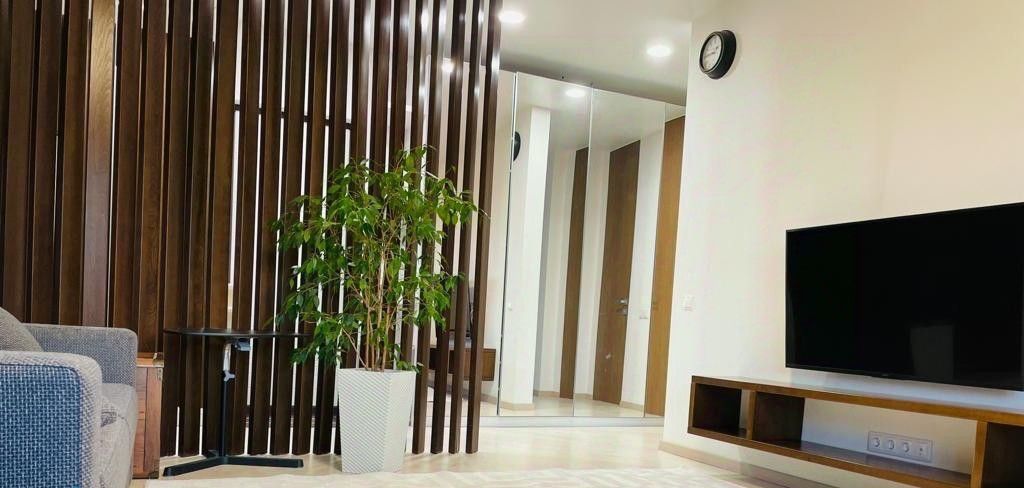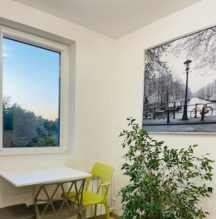 Из всех окон квартиры открывается прекрасный вид на парк, поэтому тишина-приятный бонус для жизни в центре города.