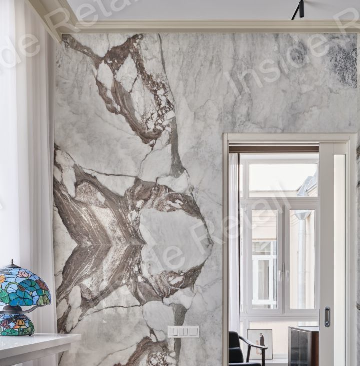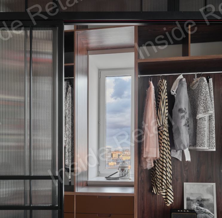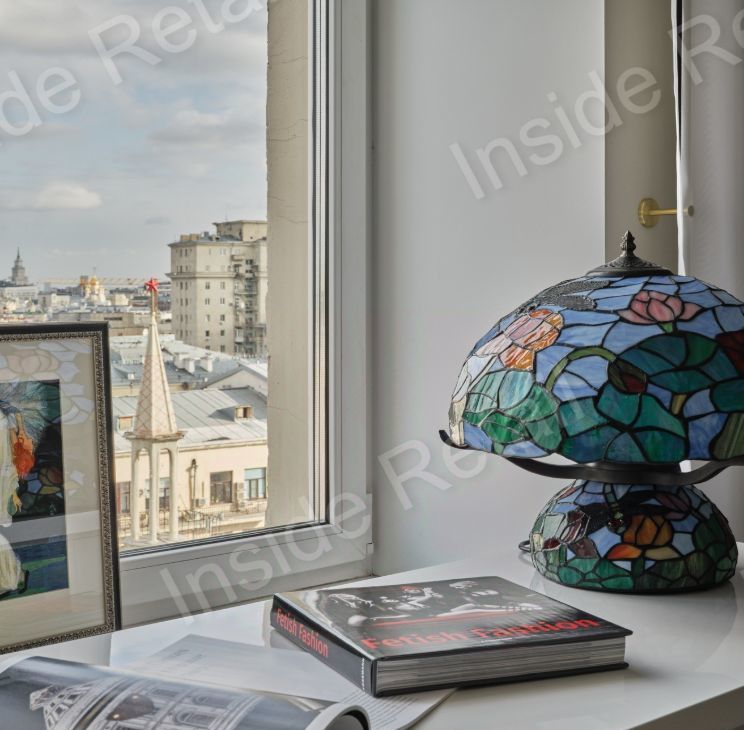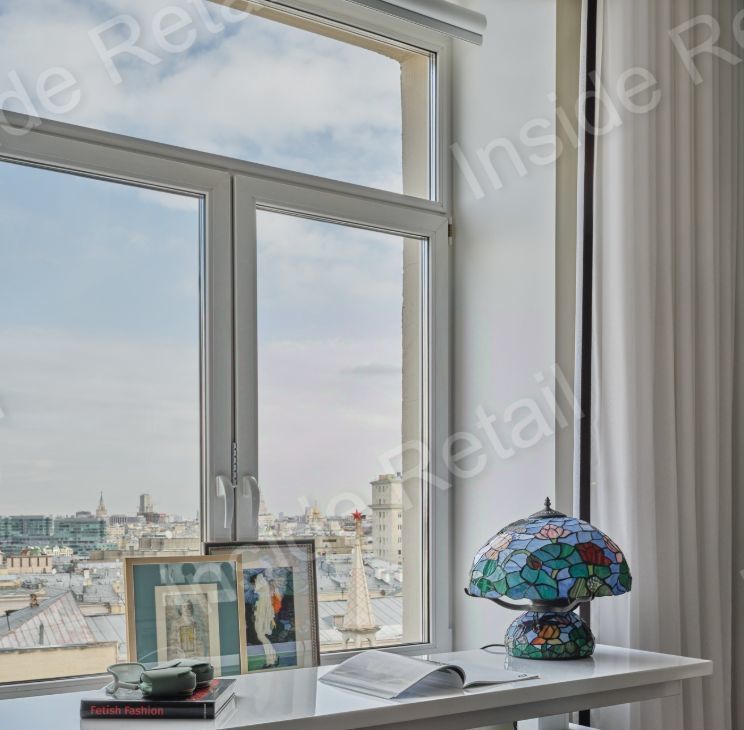 Барная стойка быстро по нажатию пальца трансформируется в рабочее пространство продолжение большого подоконника с панорамным видом на историческую часть Москвы.