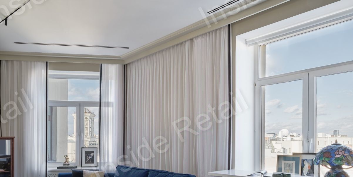 Окна в каждой комнате, включая естественный свет в гардеробной. Электроприводы штор и электрические блэкауты на всех окнах (управление с пульта). Полноценная столовая группа в столовой (круглый стол и 4 стула).