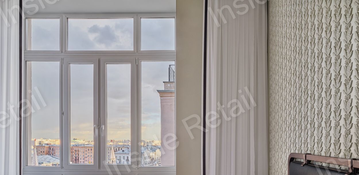 Сдается угловая панорамная квартира на последнем этаже в Доме Нирнзее. Прекрасный вариант для одного человека, пары: просторная гостиная, совмещенная с кухней, изолированная спальня. Вид на московские крыши, ротонду и звезды Дома под юбкой. Теплая молочная палитра с цветовыми акцентами. Тихий переулок, пешком - минута до метро Пушкинская, пять минут - до Патриарших, десять до Кремля.