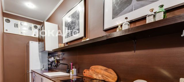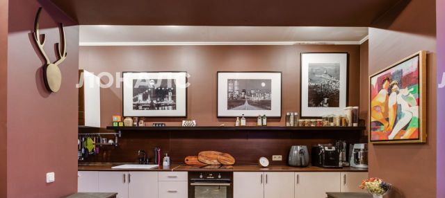 Интеллигентная квартира на Б. Каретном. Объемная гостиная, совмещенная с кухней, винтажный обеденный стол, 4 шкафа книг по философии, культурологии и гастрономии и крупная ванная. Вся бытовая техника с посудомойкой и кофемашиной, большая плазма.