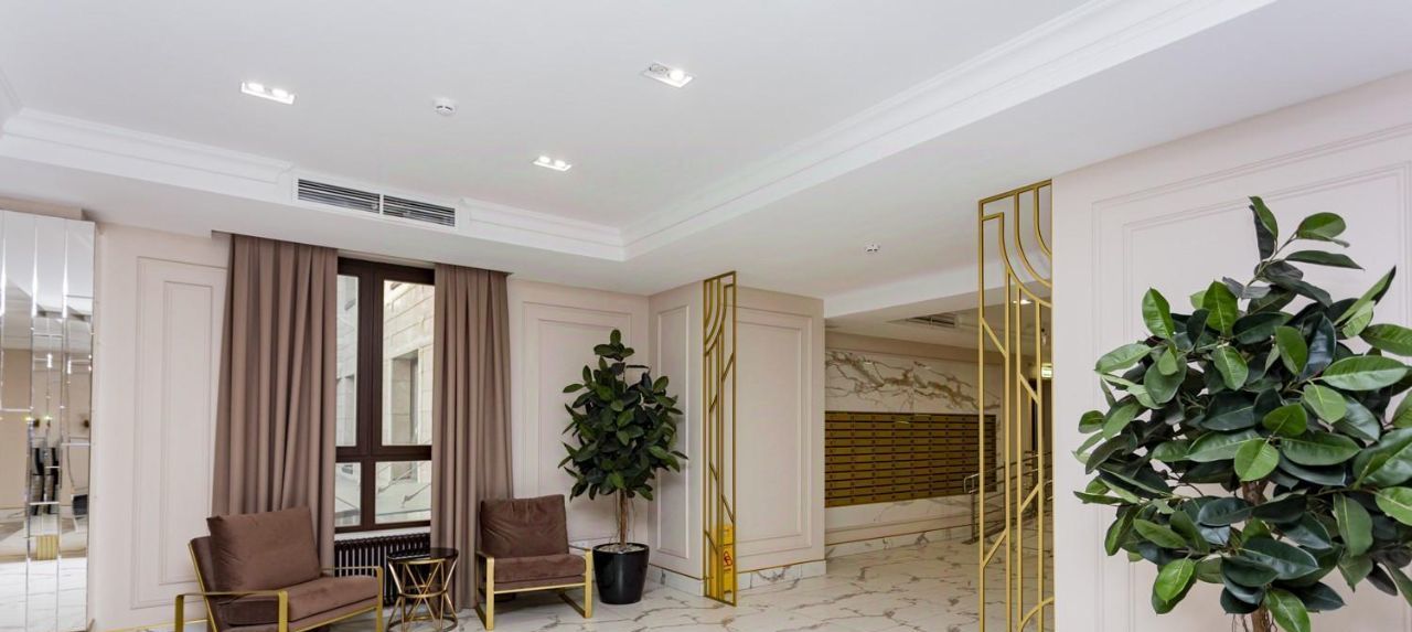 Вход через шикарный холл с ресепшн — вас встречают, принимают посылки, вызывают такси. Видеонаблюдение и два скоростных лифта исключают любые задержки.