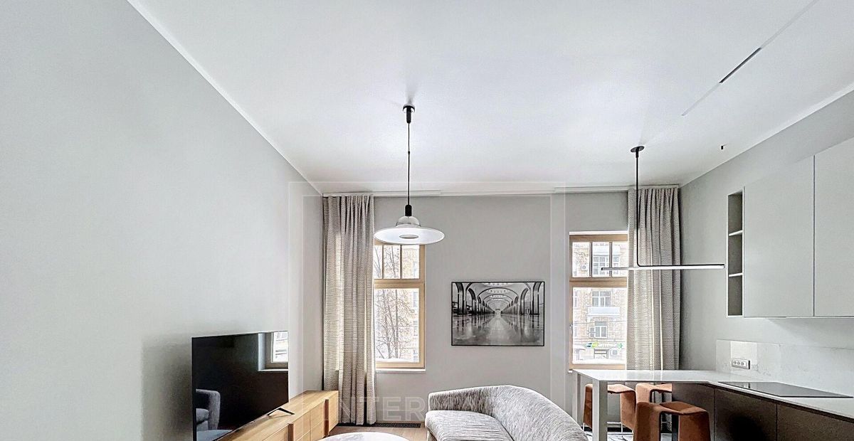 ID 46488: Предлагается на длительный срок 2 комнатная стильная квартира в аренду в клубном доме "Fantastic House" на Большом Тишинском переулке. Функциональная планировка: кухня- гостиная, спальня с ванной комнатой, гостевой туалет, гардеробная комната. Окна выходят на тихую улицу. Высота потолка 3,2 м. В стоимость входит 1 машино-место в подземном паркинге.