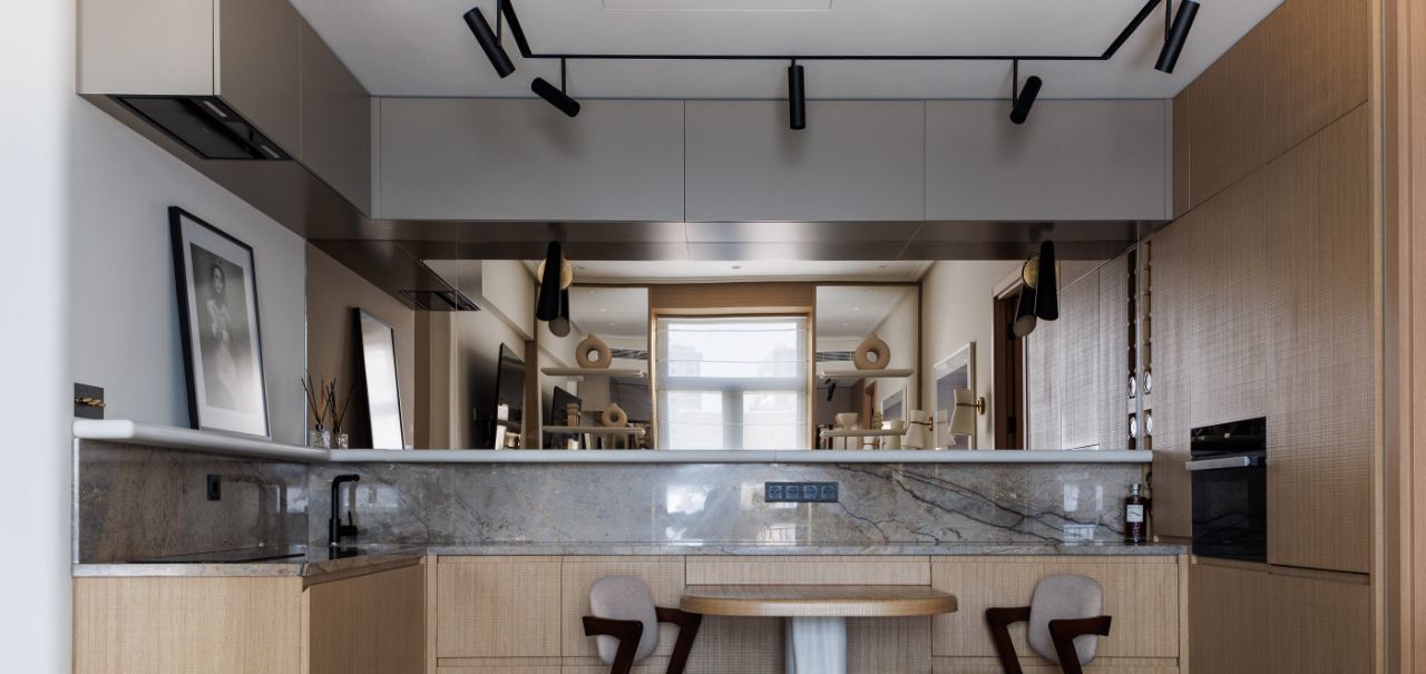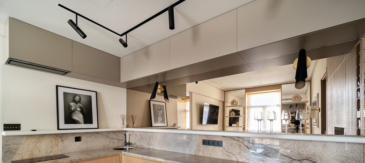 В апартаментах сделан дизайнерский ремонт, для тех, кто ценит красоту, уют и функциональность. Для ремонта были использованы только высококачественные материалы ( дерево, камень). Планировка продумана до мелочей. Очень много мест для хранения. Электрика привезена из Великобритании. Климат контроль по всему пространству.