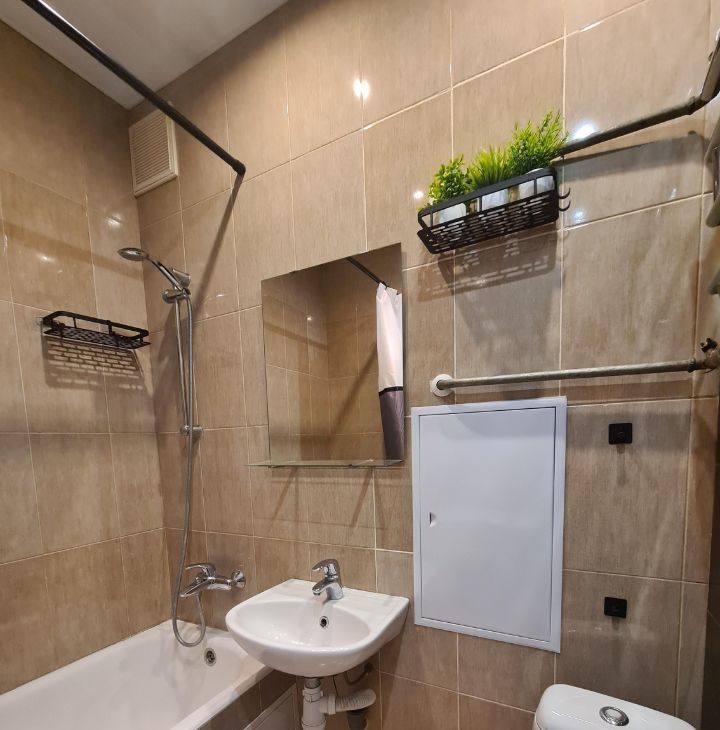 Квартира радует СВЕЖИМ ДИЗАЙНЕРСКИМ ремонтом и продуманной обстановкой. В комнате и на кухне есть мебель, а также вся необходимая техника: кондиционер, холодильник, посудомоечная и стиральная машины, телевизор. В ванной комнате установлена ванна, что добавляет комфорта. Окна выходят во двор, поэтому в квартире всегда тихо и спокойно.