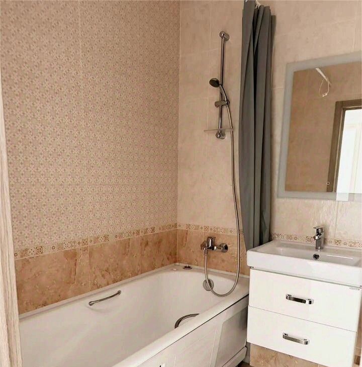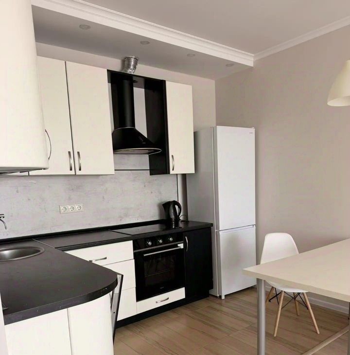 В квартире выполнен свежий евроремонт. Кухня оборудована современной техникой: холодильник, варочная панель, духовой шкаф и посудомоечная машина. Ванная комната совмещена.