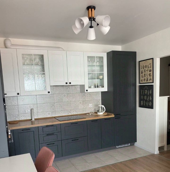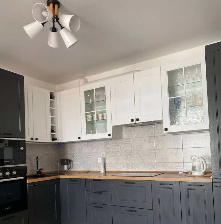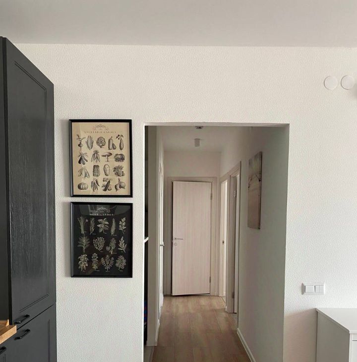 Оставляем почти всю мебель, кухня "Кухонный двор" - вся техника Bosch. В спальнях установлены шкафы-купе Ikea. В коридоре встроенный шкаф, делался на заказ. Диван и кровать Divan.ру, стулья Imodern. Установлены два инвенторных кондиционера: в гостиной и основной спальне. Установлена бронированная дверь Torex Superomega.