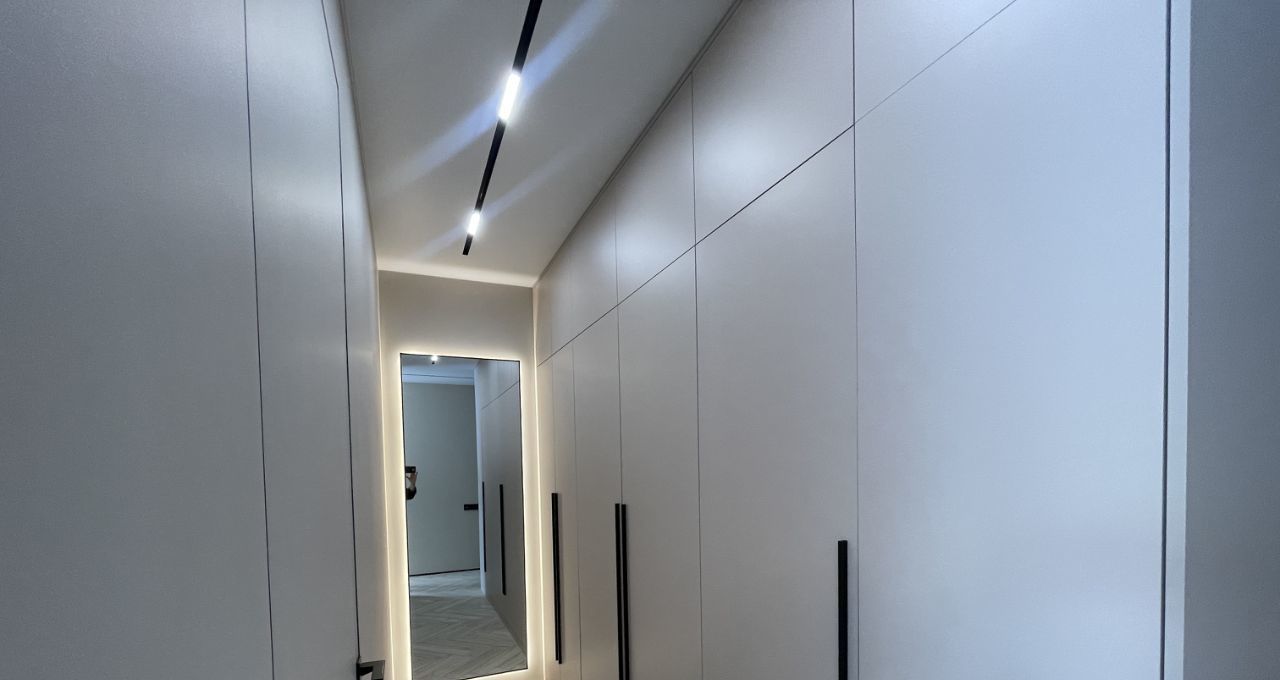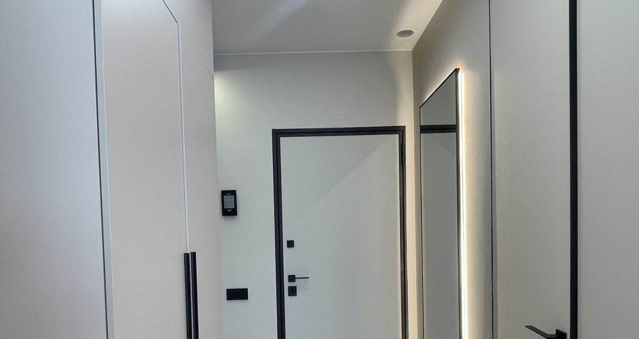 Продуманная и удобная система хранения: большой функциональный шкаф для одежды во всю стену рядом со спальной комнатой, шкаф в прихожей и большой шкаф в сан/узле. 2 больших зеркала.