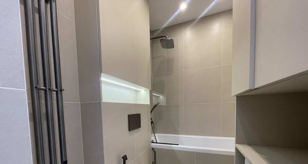 В квартире выполнен высококачественный ремонт с применением дорогих материалов.