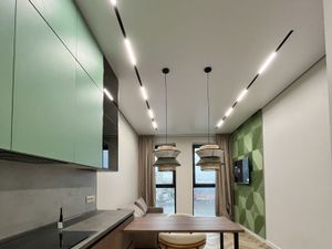 Квартира с дизайнерским ремонтом и продуманной планировкой. Общая жилая площадь составляет 20 кв. м, а площадь кухни-гостиной — 15 кв. м, что позволяет комфортно готовить и принимать гостей. В квартире есть все необходимое для жизни: кондиционер, холодильник, посудомоечная машина, телевизор и стиральная машина. В комнате установлена мебель, а в ванной комнате — душевая кабина.