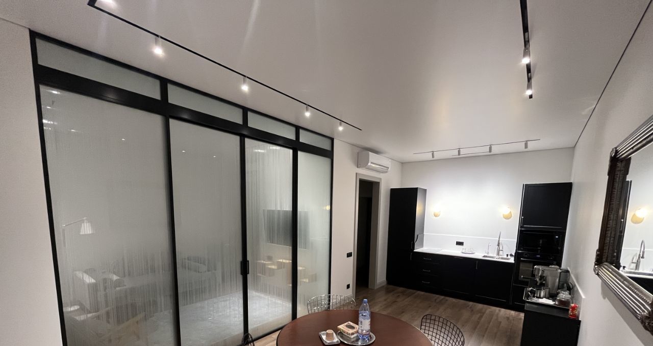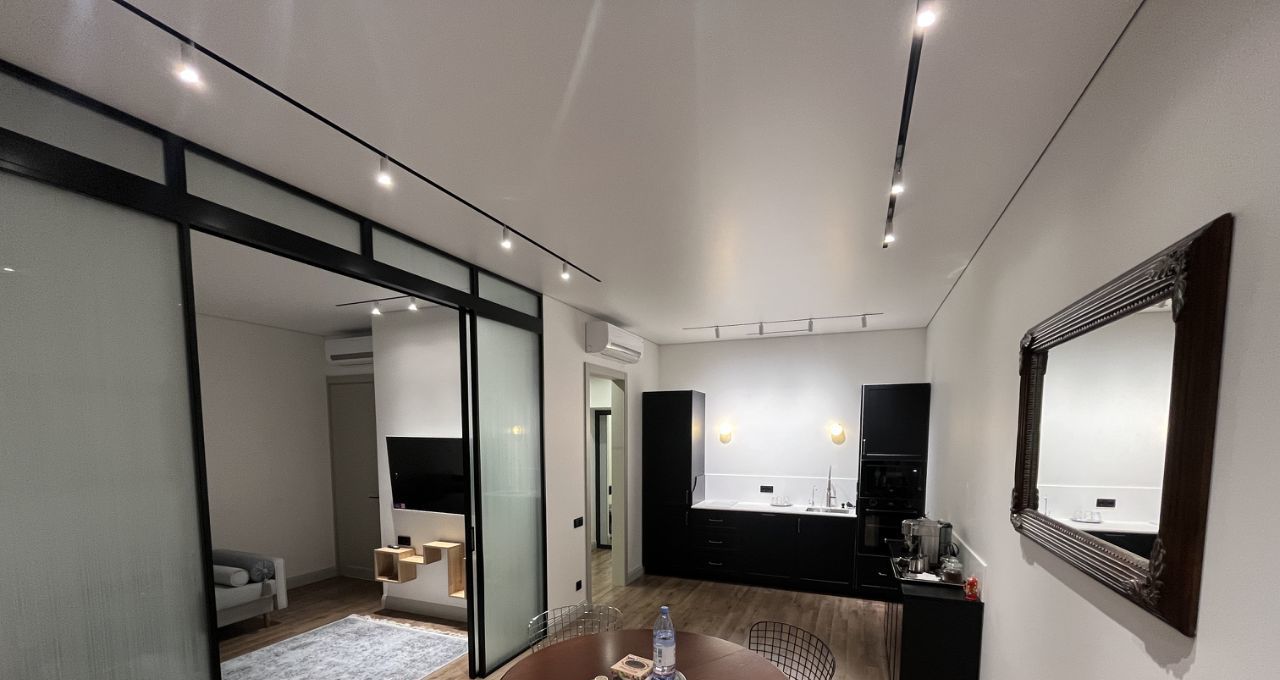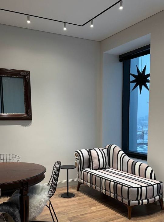 Что касается самой квартиры (62 кв.м.), то здесь всё оригинально и при всем этом достаточно функционально: в доме комфортное лобби с круглосуточной охраной и видеонаблюдением, подземный трех уровневый паркинг (возможна аренда нашей квартиры вместе с машиноместом), 8-мь скоростных лифтов, идеальный 18-й этаж.