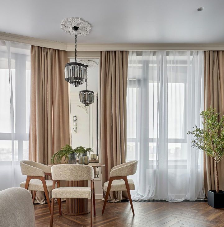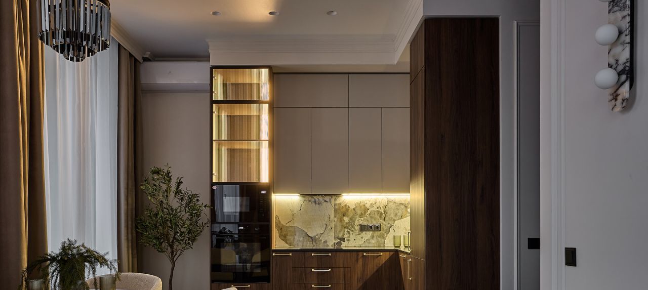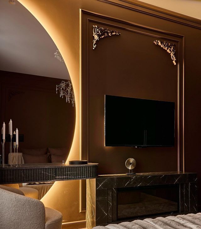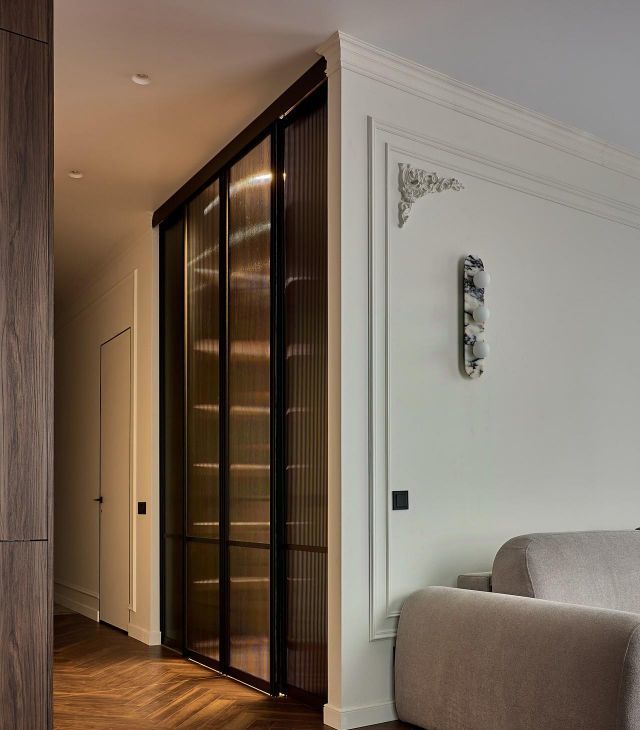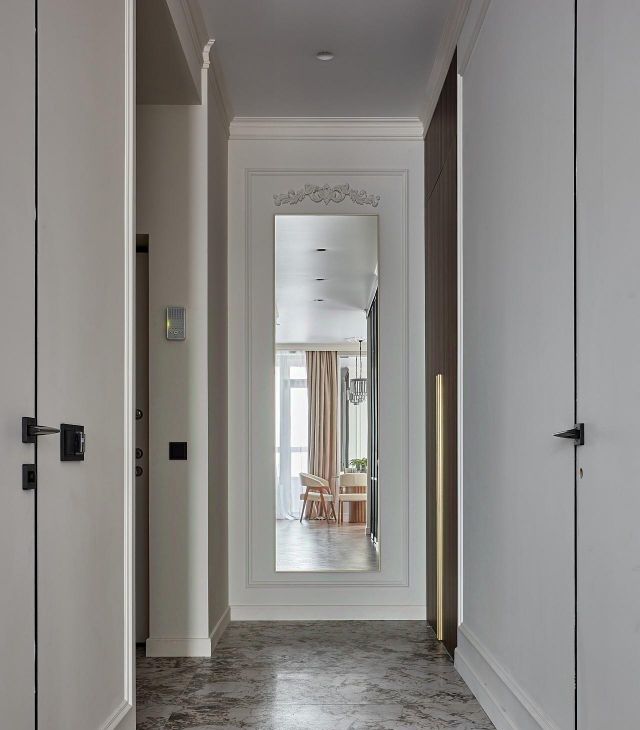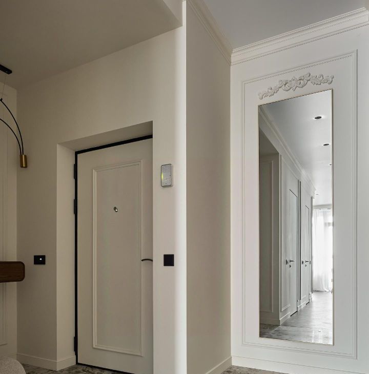 Полная шумоизоляция квартиры, дорогой дизайнерский ремонт, теплый пол, много зеркал и света, эл.камин, мебель на заказ, бра из натурального камня, кондиционеры и Яндекс ТВ с Алисой в каждой комнате, проточный водонагреватель, датчик протечек.