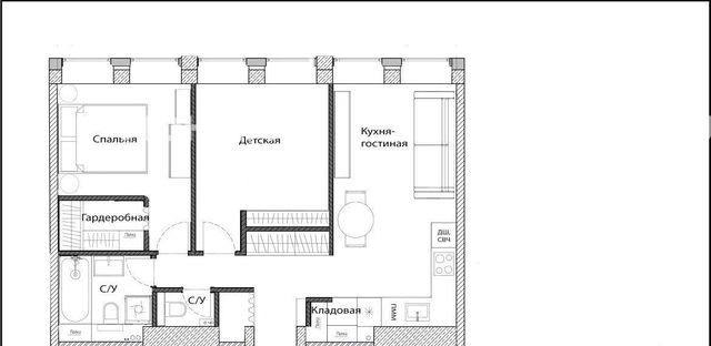 Высокие потолки 2.8 метра создают ощущение дополнительного пространства.