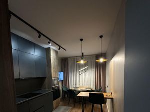 В зоне отдыха раскладной диван и 4K Smart телевизор Samsung. Wi-Fi. Регулируемый свет и подсветка штор. Кондиционер. Панорамные окна.