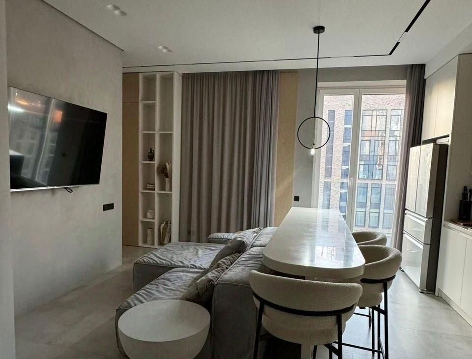 В квартире сделан дизайнерский ремонт, который придаёт всем помещениям стильный и современный вид. В просторной кухне и комнате есть вся необходимая мебель. В квартире установлена современная техника: кондиционер, холодильник, посудомоечная машина, телевизор и стиральная машина. Особенности планировки включают в себя два совмещённых санузла, оснащённых как ванной, так и душевой кабиной, что идеально подойдёт для комфортного проживания.