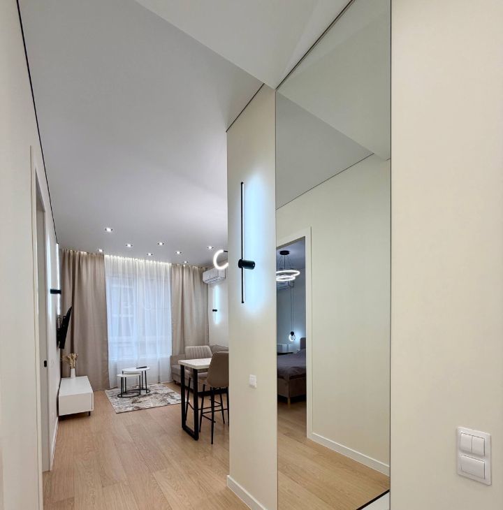 Выполнен современный, дизайнерский ремонт в приятных тонах, использовались исключительно качественные материалы отделки. Сделана полная шумоизоляция всех стен, пола и потолка.