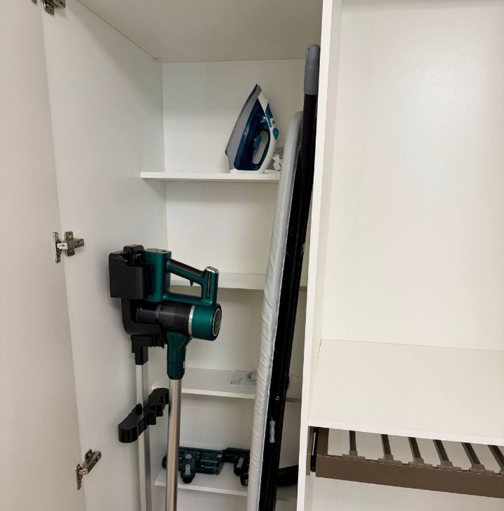 Квартира оснащена абсолютно всей необходимой мебелью и бытовой техникой для комфортного проживания, включая посудомоечную машину, стиральную машину с функцией сушки, кондиционеры и телевизоры в каждой комнате, утюг, пылесос, гладильную доску и сушилку для белья, и даже набор посуды и встроенный в кран фильтр для питьевой воды.