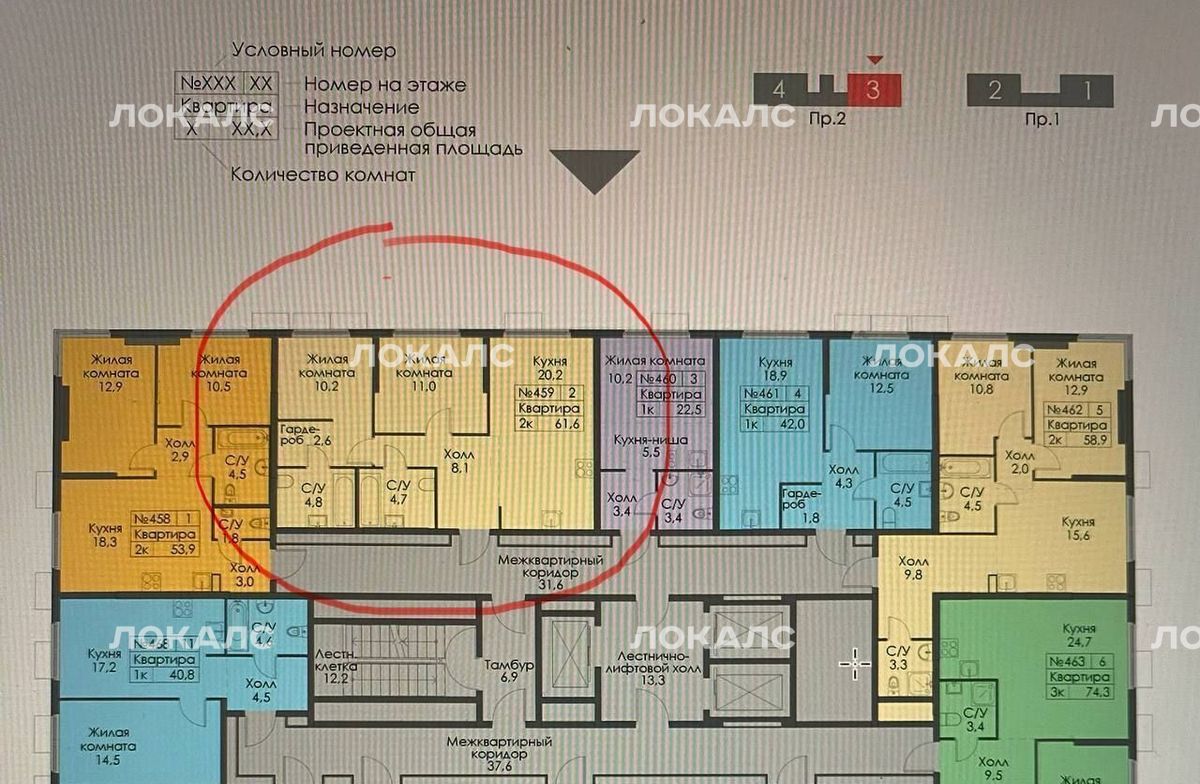 2-к кв. Москва бул. Чкаловский, 6 (61.7 м²)