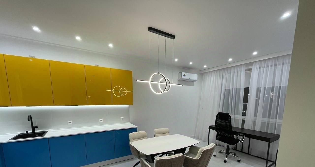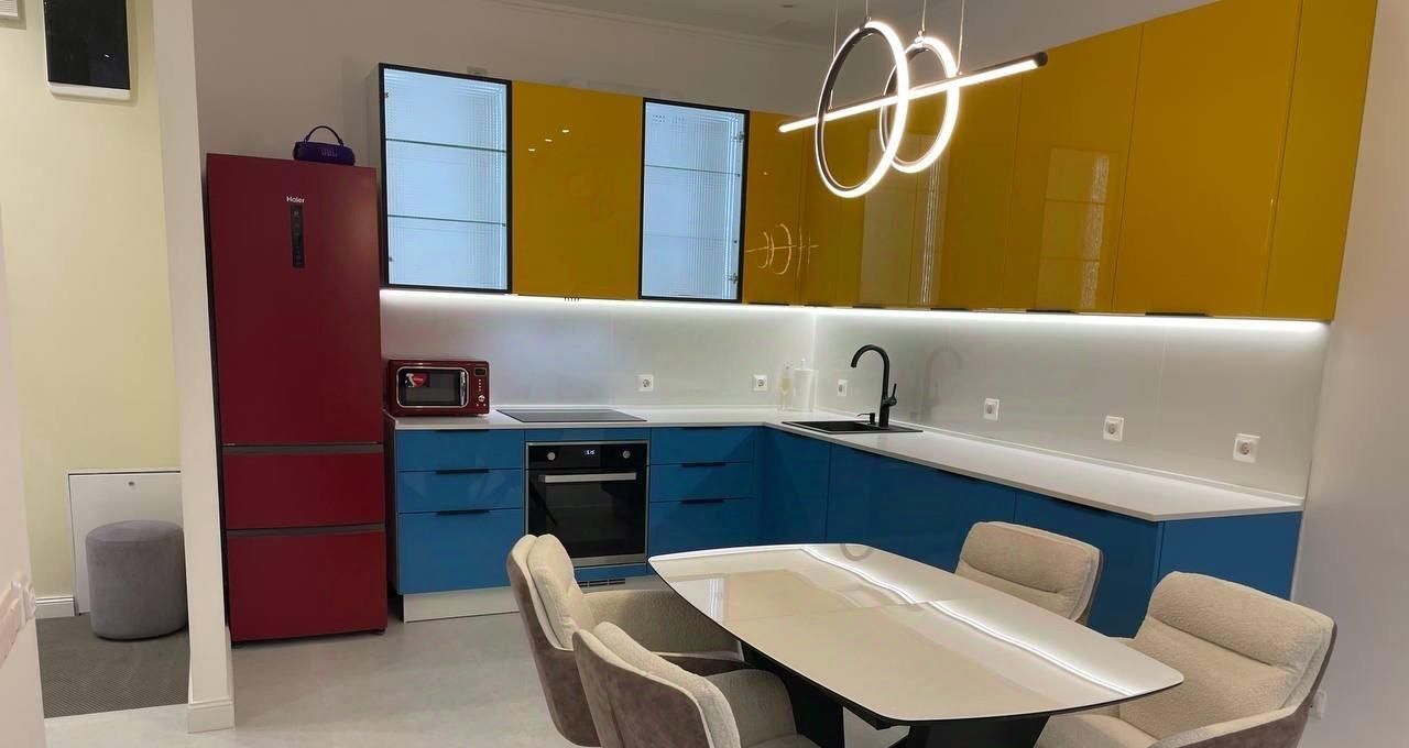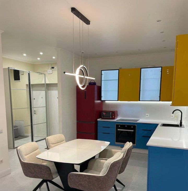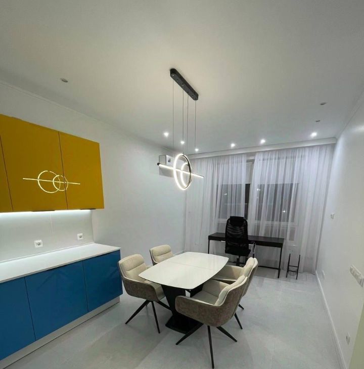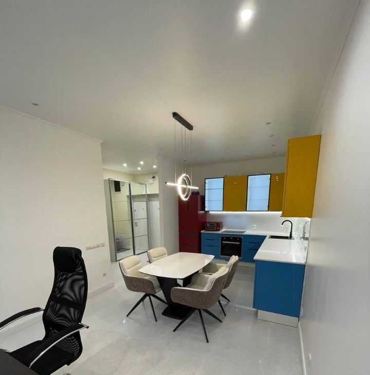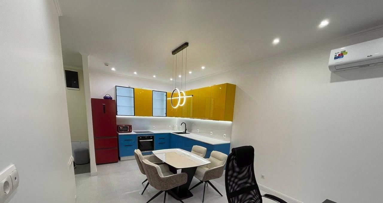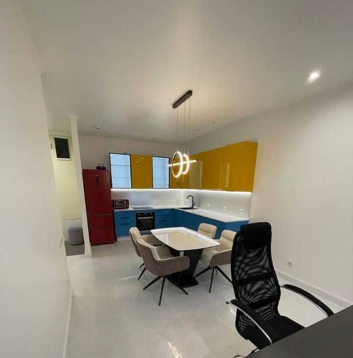 В квартире сделан качественный евроремонт, поэтому можно сразу заехать и жить с комфортом. Просторная кухня площадью 23 кв. м обставлена современной мебелью и оснащена всей необходимой техникой: кондиционер, холодильник, посудомоечная машина, стиральная машина с сушкой ,с двойной загрузкой ,телевизор. В квартире два совмещённых санузла, с душевыми кабинами. Окна выходят во двор, поэтому в квартире тихо и спокойно.