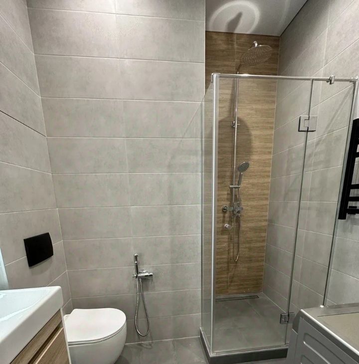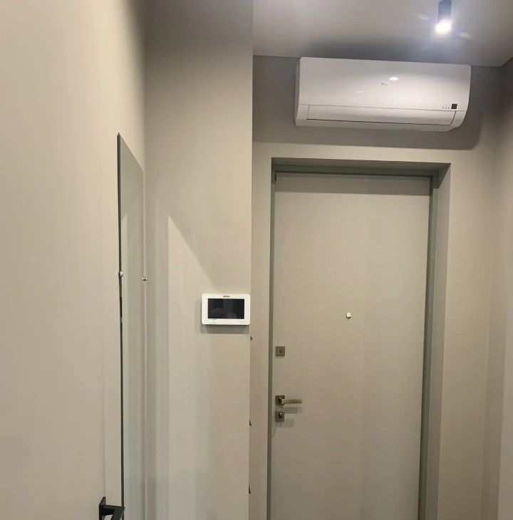 Квартира укомплектована всем необходимым: стиральная машинка, система кондиционирования, посудомоечная машина, духовой шкаф, варочная панель, вытяжка, чайник, холодильник и морозильная камера.