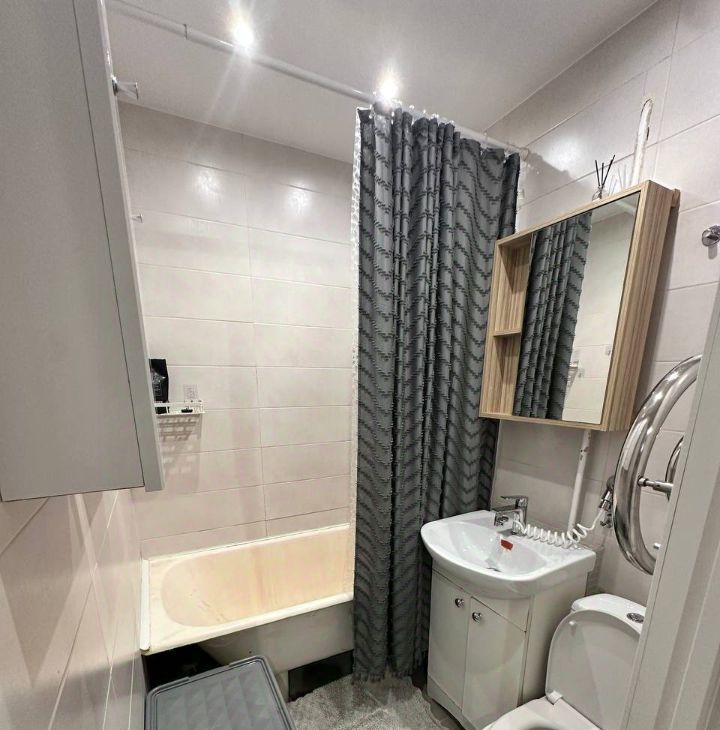 В квартире сделан аккуратный ремонт, есть вся необходимая мебель и техника: кондиционер, холодильник, телевизор и стиральная машина. Совмещенный санузел оборудован ванной. Балкон застеклен. Интернет уже подключен, поэтому можно сразу выйти в сеть.