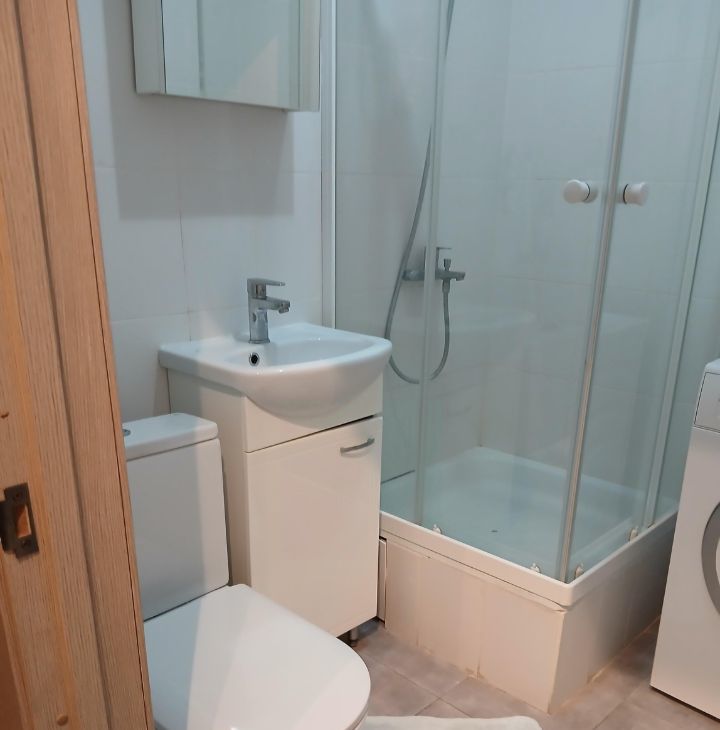 В квартире сделан аккуратный ремонт. Здесь вы найдете всё необходимое для комфортной жизни: холодильник, посудомоечная и стиральная машины. Мебель на кухне и в комнате добавляет уюта и функциональности. Ванная комната оборудована душевой кабиной.