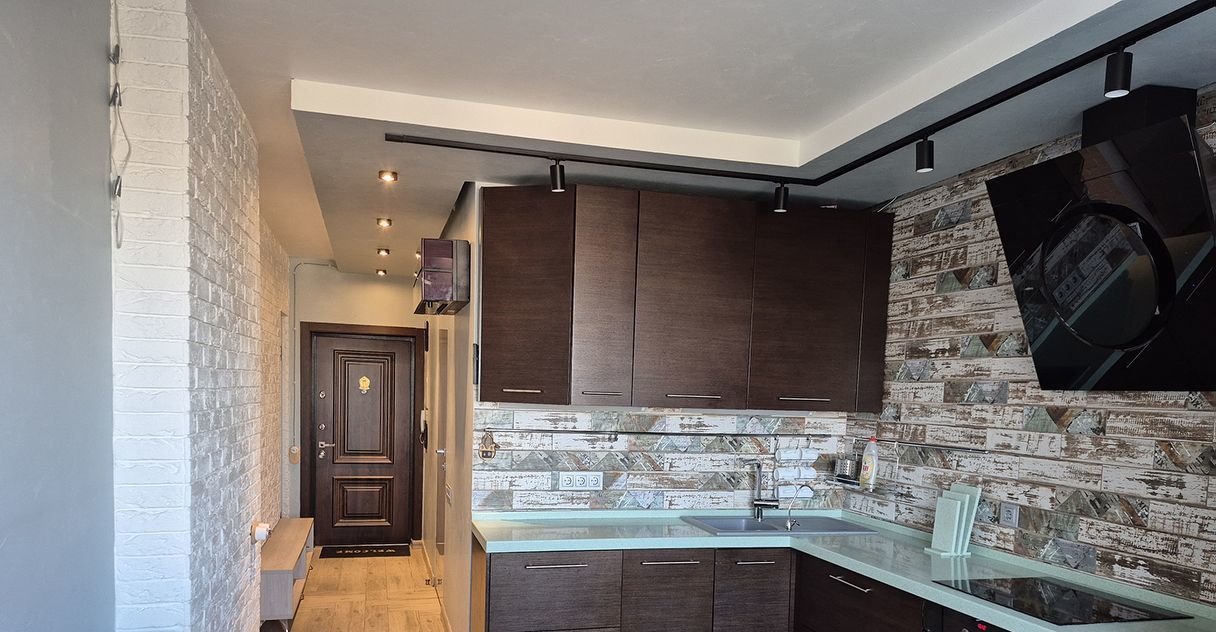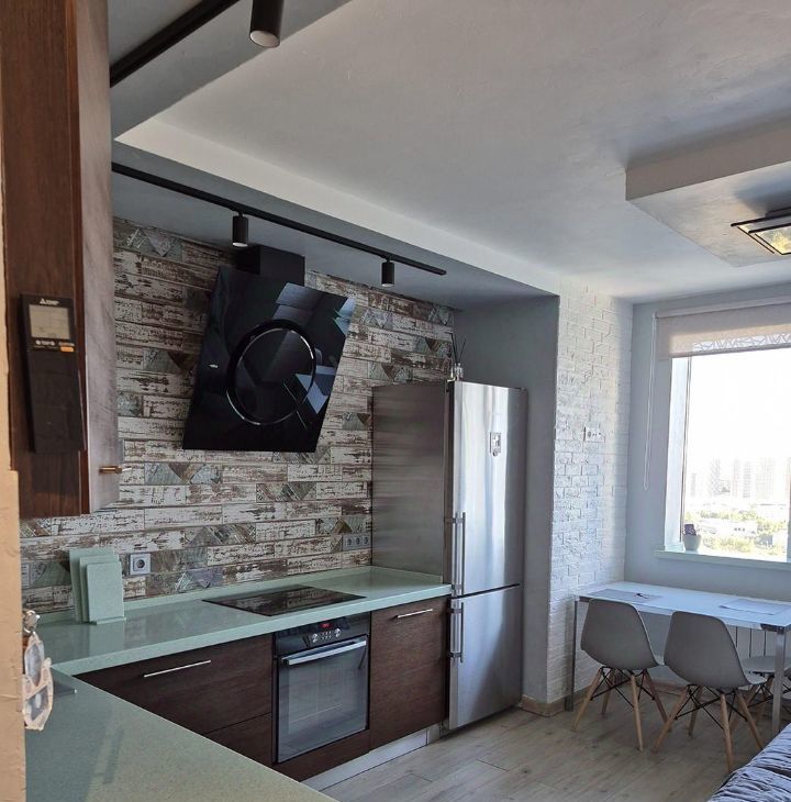 Квартира с дизайнерским ремонтом и планировкой евродвушка (46м2), обеспечивающее баланс между общим пространством и приватностью, с хорошей шумоизоляцией и освещением.