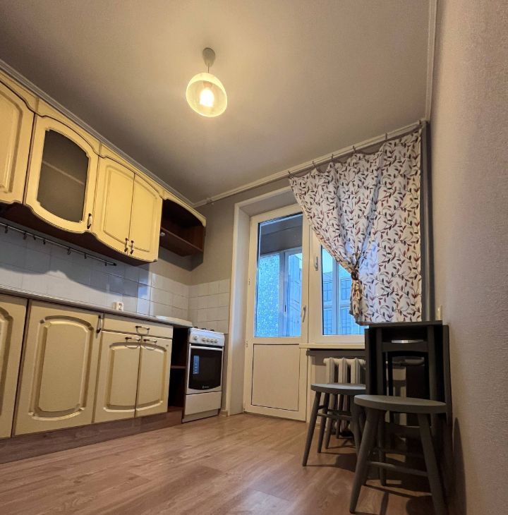 Сдаётся уютная двухкомнатная квартира на 12 этаже блочного дома 1967 года постройки. Общая площадь квартиры — 40 кв. м, жилая площадь — 25 кв. м, кухня — 6.7 кв. м. Высота потолков составляет 2.64 метра. Окна выходят во двор, поэтому в квартире тихо и спокойно. В доме два пассажирских лифта и наземная парковка.