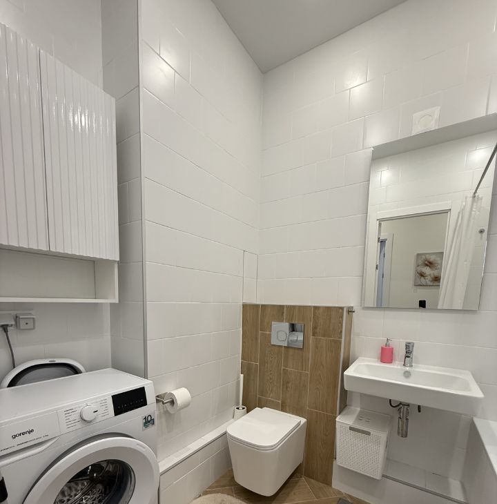 В квартире есть всё необходимое для комфортного проживания: кондиционер, холодильник, посудомоечная и стиральная машины, телевизор. Мебель расположена на кухне и в комнатах. В санузле установлена ванна, что особенно приятно для любителей релаксации после трудового дня.