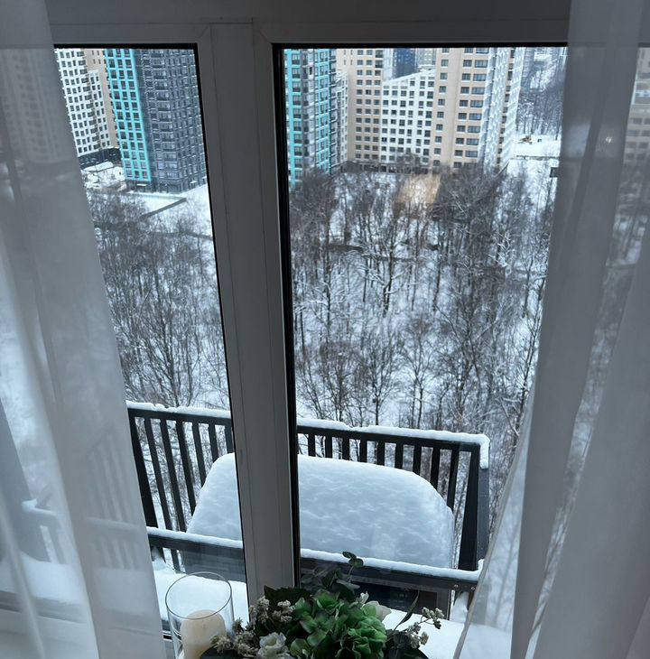 Квартира выходит на солнечную сторону с панорамным видом на лес, окна практически в пол.