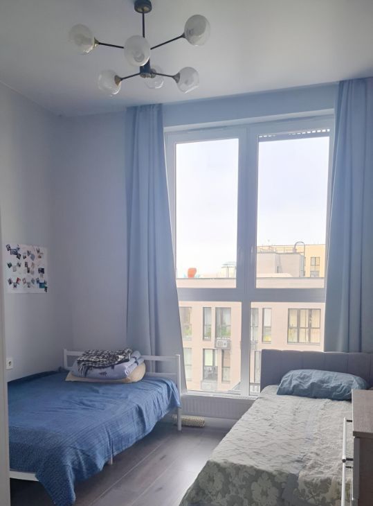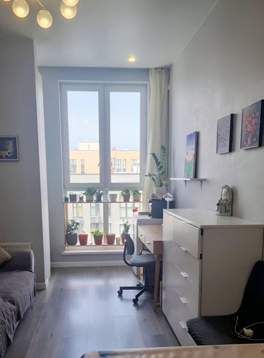 Сдаётся на май, июнь, июль уютная однокомнатная квартира с евроремонтом на Скандинавском бульваре, 19. Общая площадь — 35 кв. м, расположена на 15-м этаже 17-этажного монолитного дома, построенного в 2022 году. Высокие потолки — 3.14 метра создают ощущение простора.
