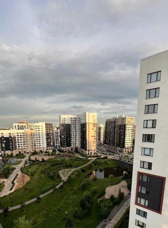Квартира расположена на 11 этаже 12-этажного здания, оснащённого пассажирским и грузовым лифтами. На территории двора предусмотрена закрытая территория, а также спортивная площадка для активного отдыха, детская площадка. Рядом расположена зона отдыха с прудом и беседками. Магазины и кафе в шаговой доступности.