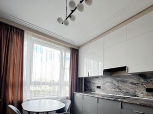 Сдаётся в аренду уютная и современная двухкомнатная квартира с дизайнерским ремонтом. Общая площадь составляет 50.5 кв. м, из них просторная кухня занимает 26 кв. м. Квартира расположена на 13-м этаже 14-этажного дома, а окна выходят в лес и на бульвар, что обеспечит вам тишину и комфорт.