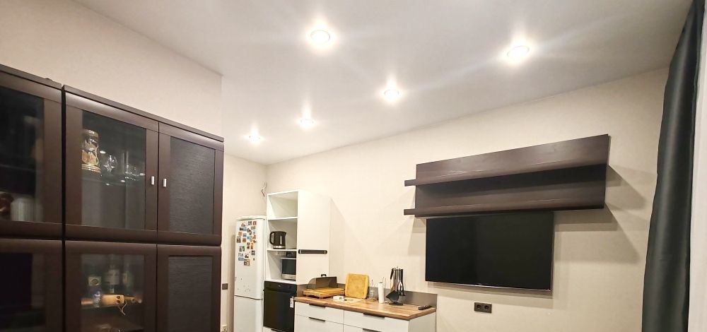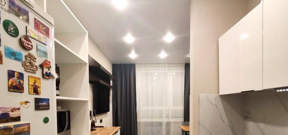 - ПРОСТОРНАЯ КУХНЯ - ГОСТИНАЯ площадью 15 м²: удобный кухонный гарнитур, встроенный духовой шкаф, посудомоечная машина и удобная рабочая зона.