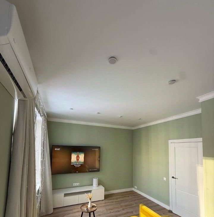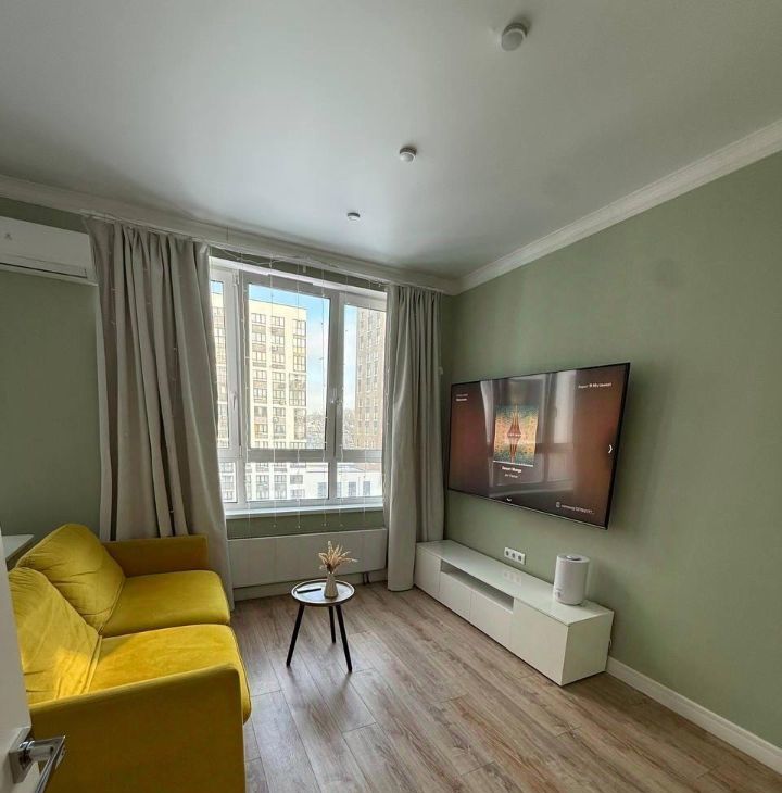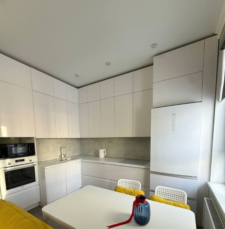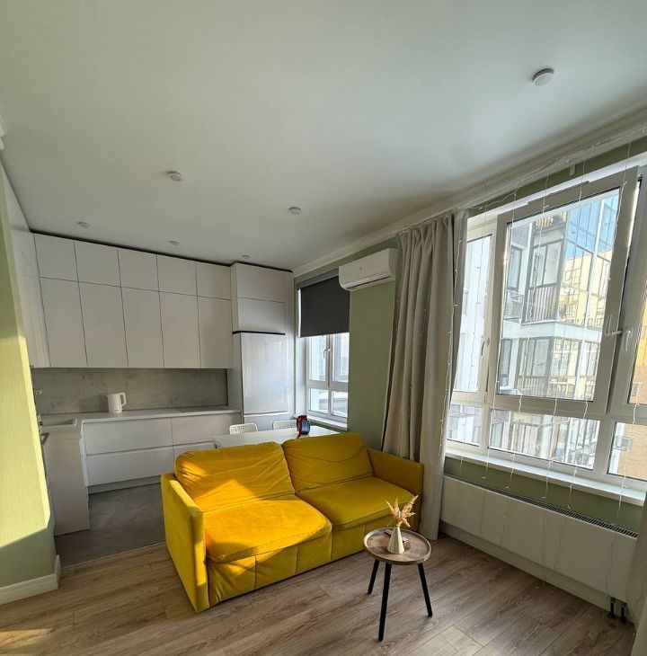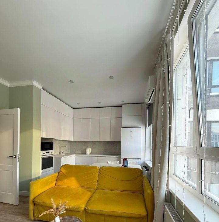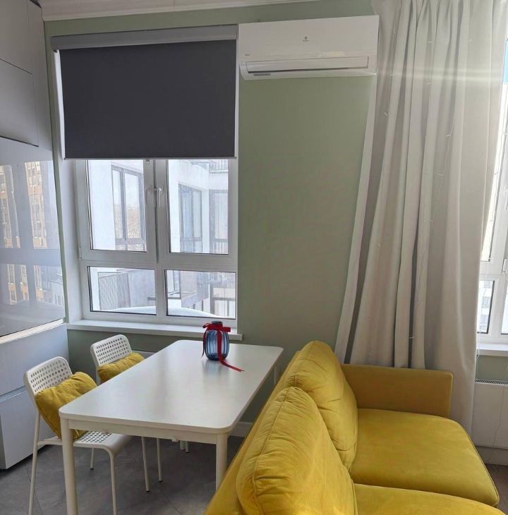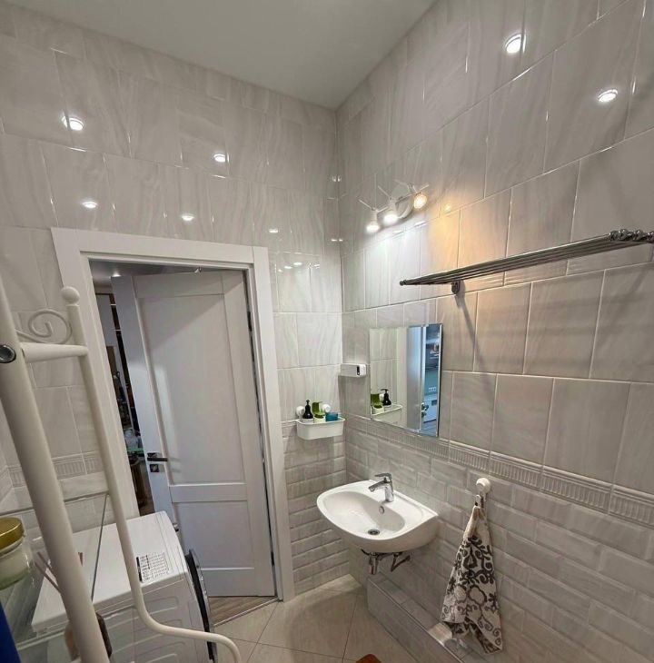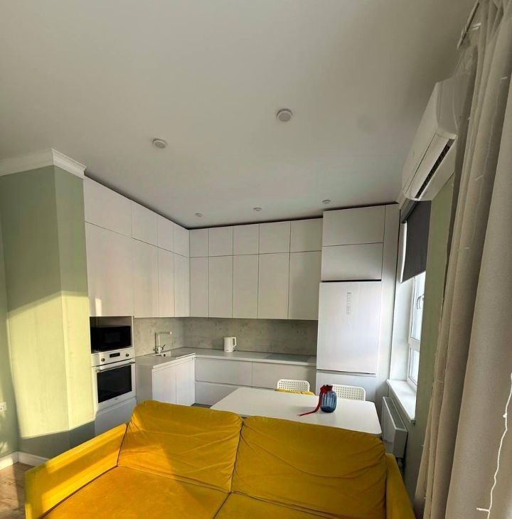 Квартира расположена на 7 этаже, дом построен в 2020 году. В квартире выполнен евро ремонт, комнаты смежные, есть все для комфортного проживания. Кухня оснащена современной техникой: Холодильник значительно больше стандартных моделей No Frost , микроволновая печь, индукционна варочная поверхность, духовой шкаф AEG, посудомойка Bosch, чайник, установлена система питьевой воды, встроен очень вместительный кухонный гарнитур. В смежной гостиной с кухней установлен кондиционер и телевизор Samsung 75 диагональ, диван на два спальных места.