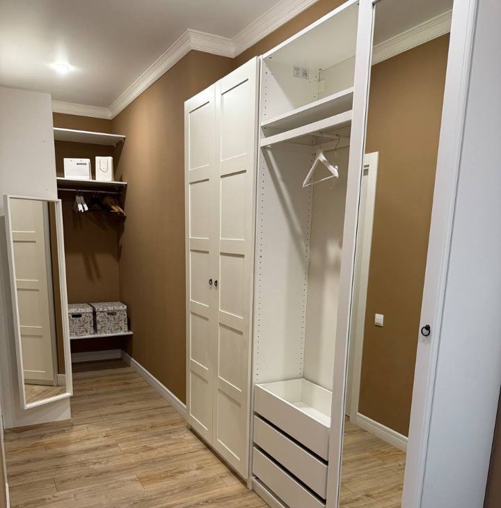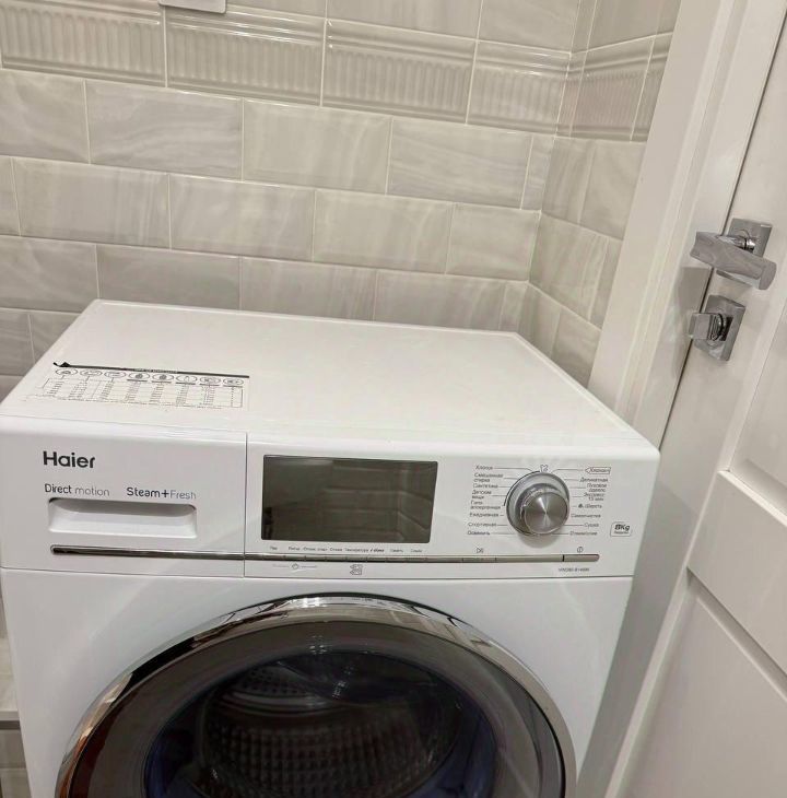 В коридоре предусмотрены вместительные шкафы для хранения вещей. Санузел совмещенный, оборудован стиральной машиной Haier на 8кг.
