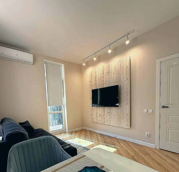 В квартире выполнен стильный, дизайнерский ремонт - в Скандинавском стиле. Квартира оборудована новой, дорогой, европейской техникой. Установлена современная мебель.