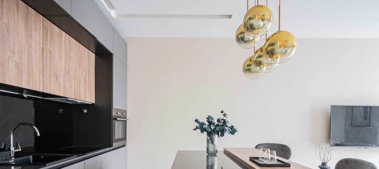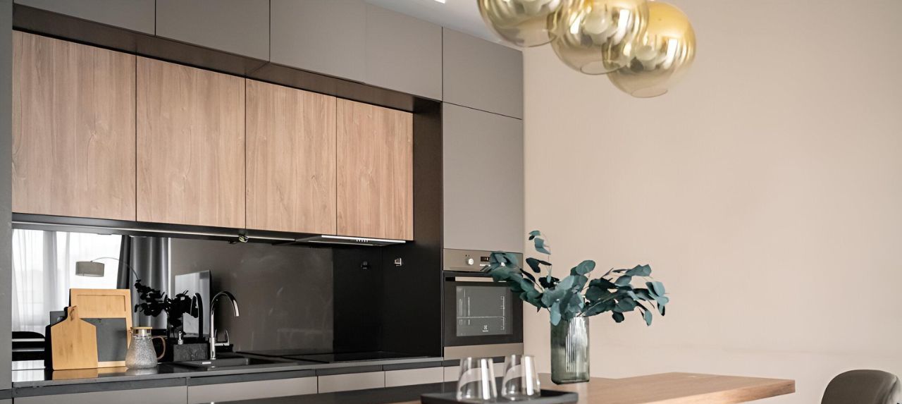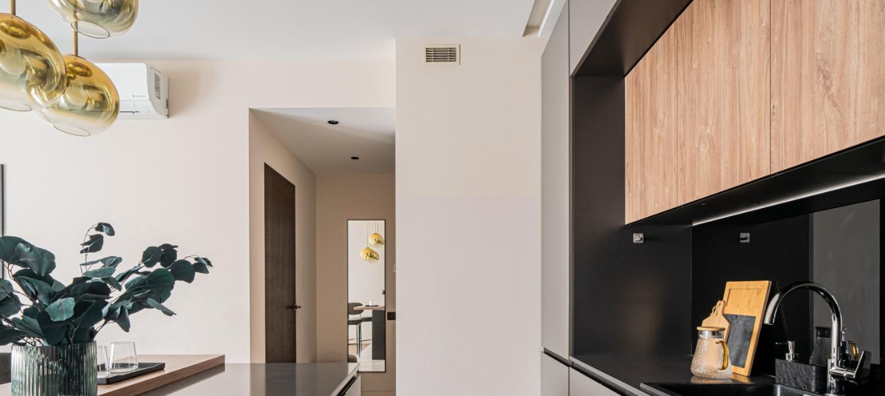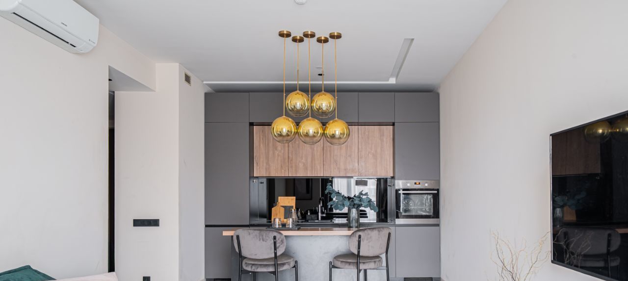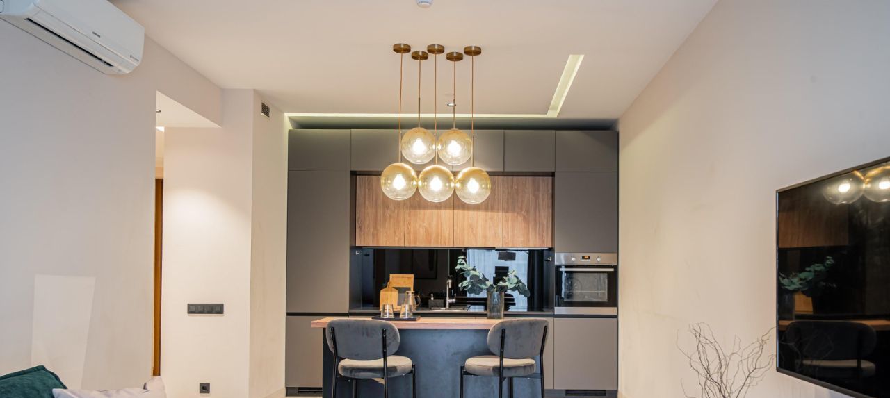 - Бытовая техника от ведущих европейских брендов: встроенный холодильник, варочная панель, духовой шкаф, посудомоечная машина, стиральная машина, кондиционер и телевизор