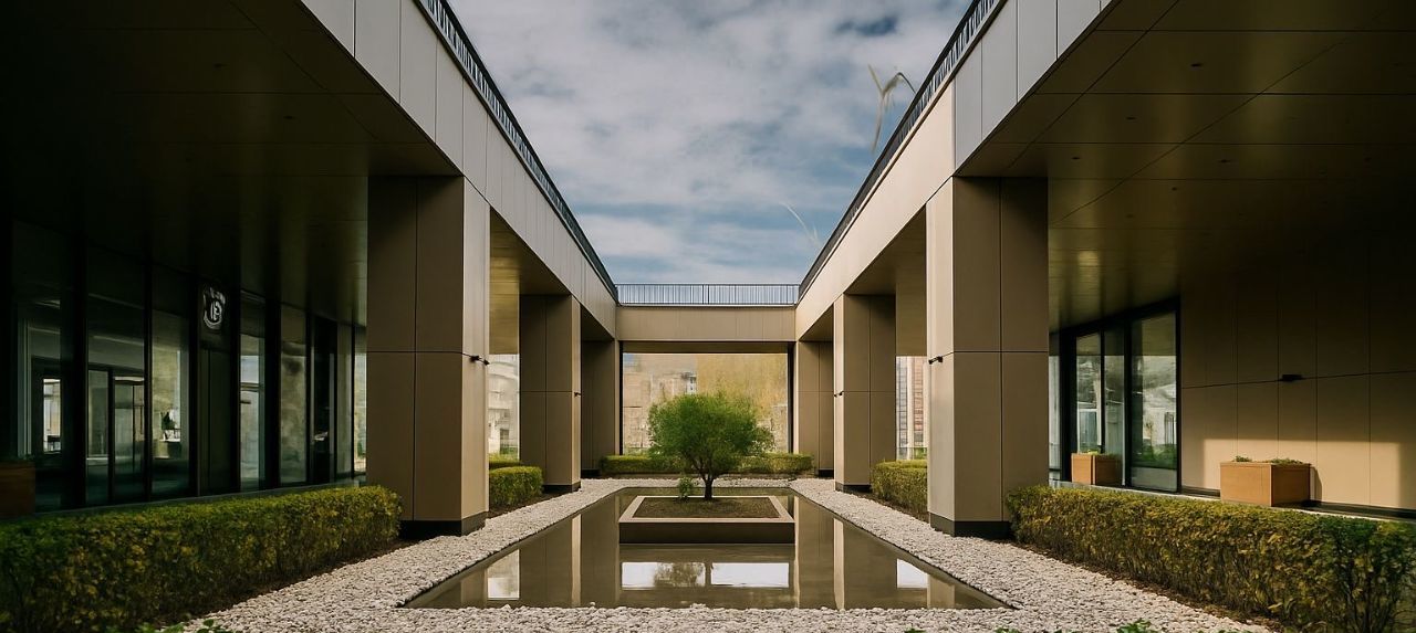- Закрытый ландшафтный внутренний двор без машин