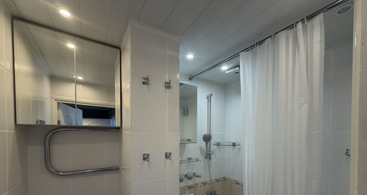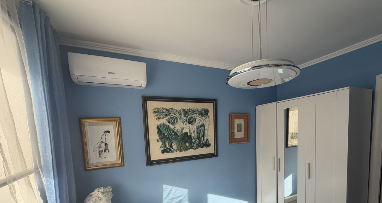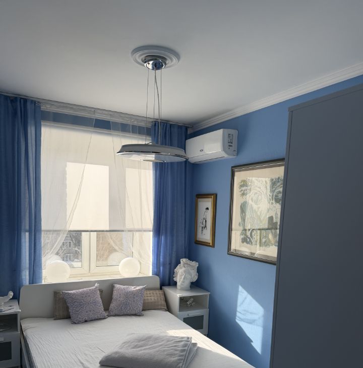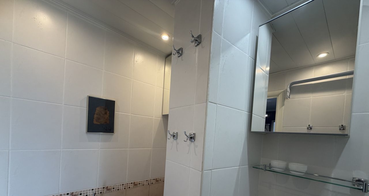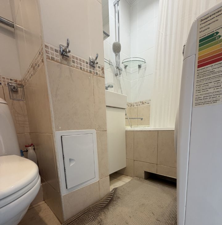 В квартире выполнен качественный евроремонт. Есть вся необходимая мебель на кухне и в комнате. Из техники в вашем распоряжении: кондиционер, холодильник, стиральная машина и телевизор. Санузел совмещённый, оборудован ванной. Окна выходят во двор, поэтому в квартире тихо и спокойно.