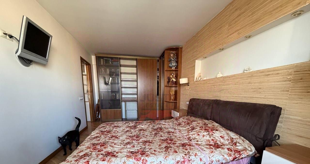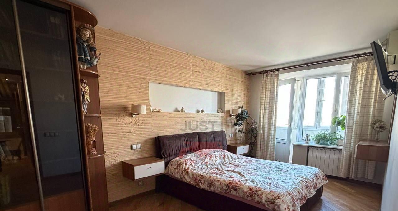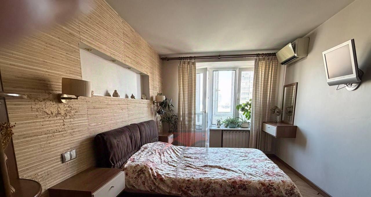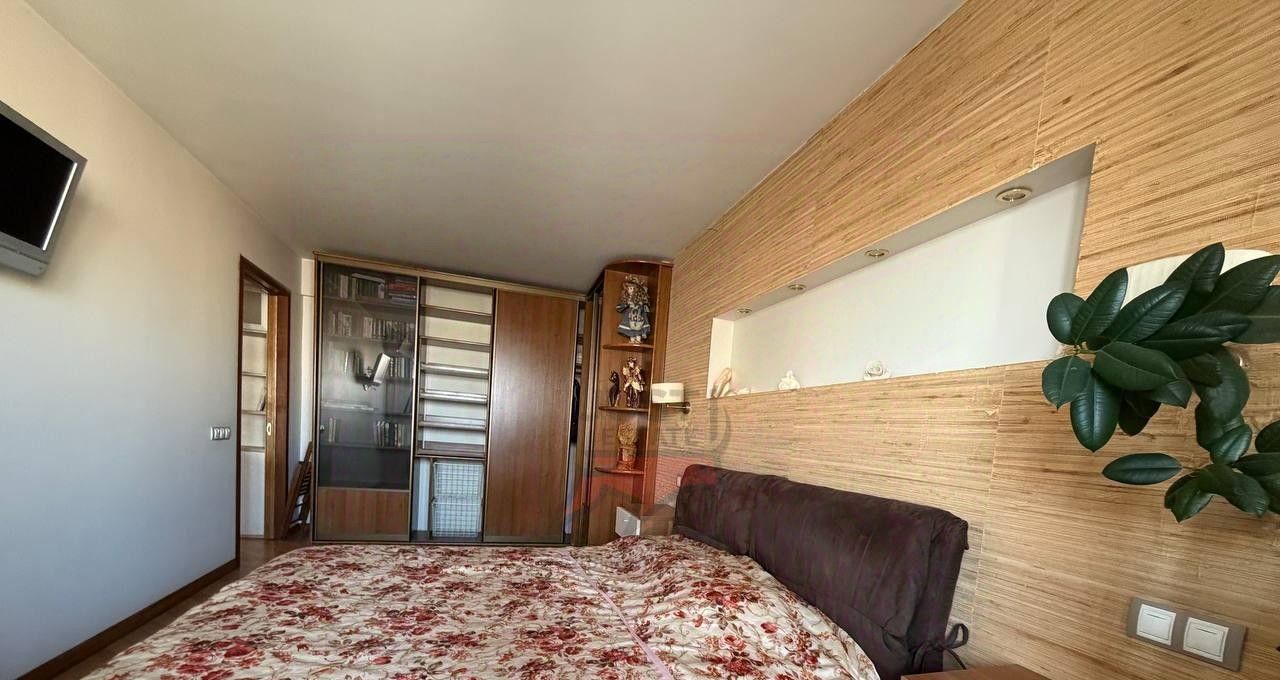Просторная спальня совмещена с балконом, в квартире имеются 2 кондиционера, что помогает поддерживать приятный климат.