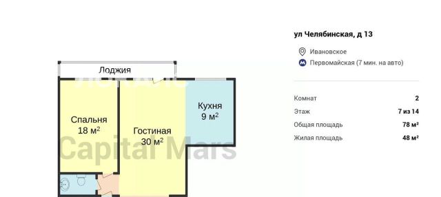 2-к кв. Москва Челябинская ул., 13 (78.0 м²)
